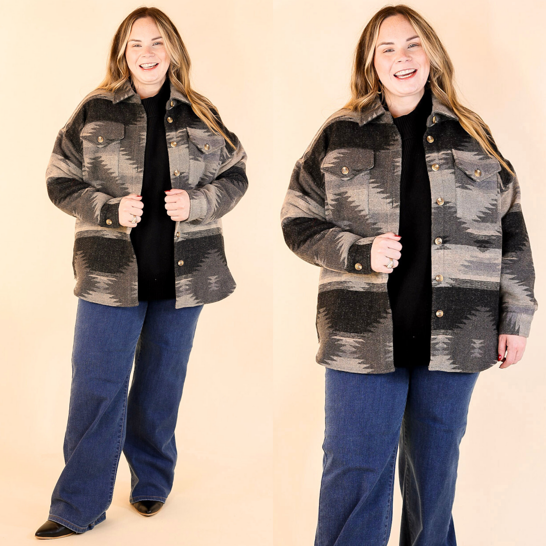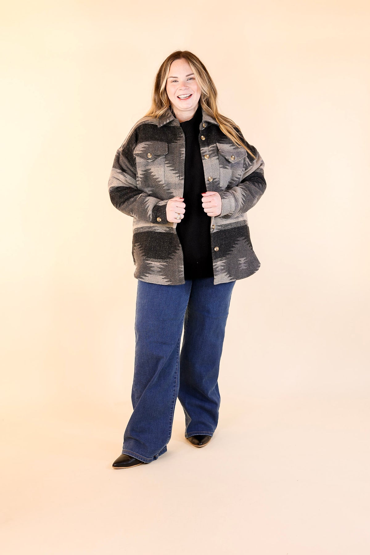 Stay stylish and warm with our Seize The Day Aztec Print Jacket! Featuring eye-catching aztec prints, a collared neckline, front pockets, and button up design, you'll look fashionable day and night. Long sleeves and vibrant greys add a touch of sophistication to this head-turning look! Dare to seize the day!