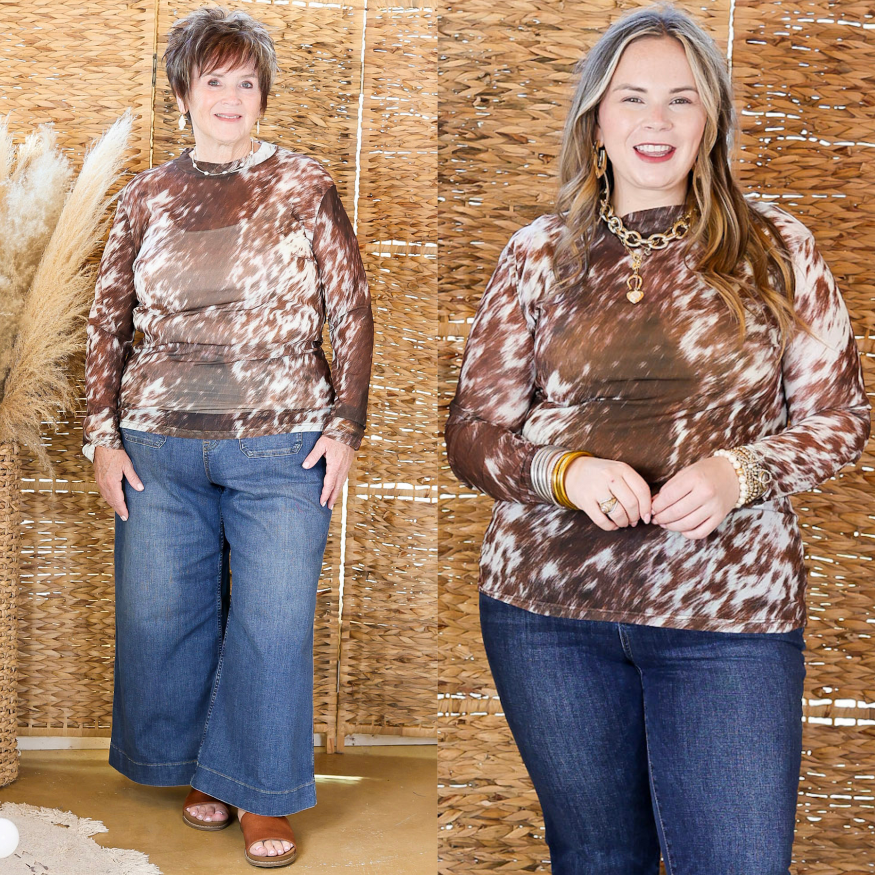 Sheer Confidence Cowhide Print Mesh Long Sleeve Top