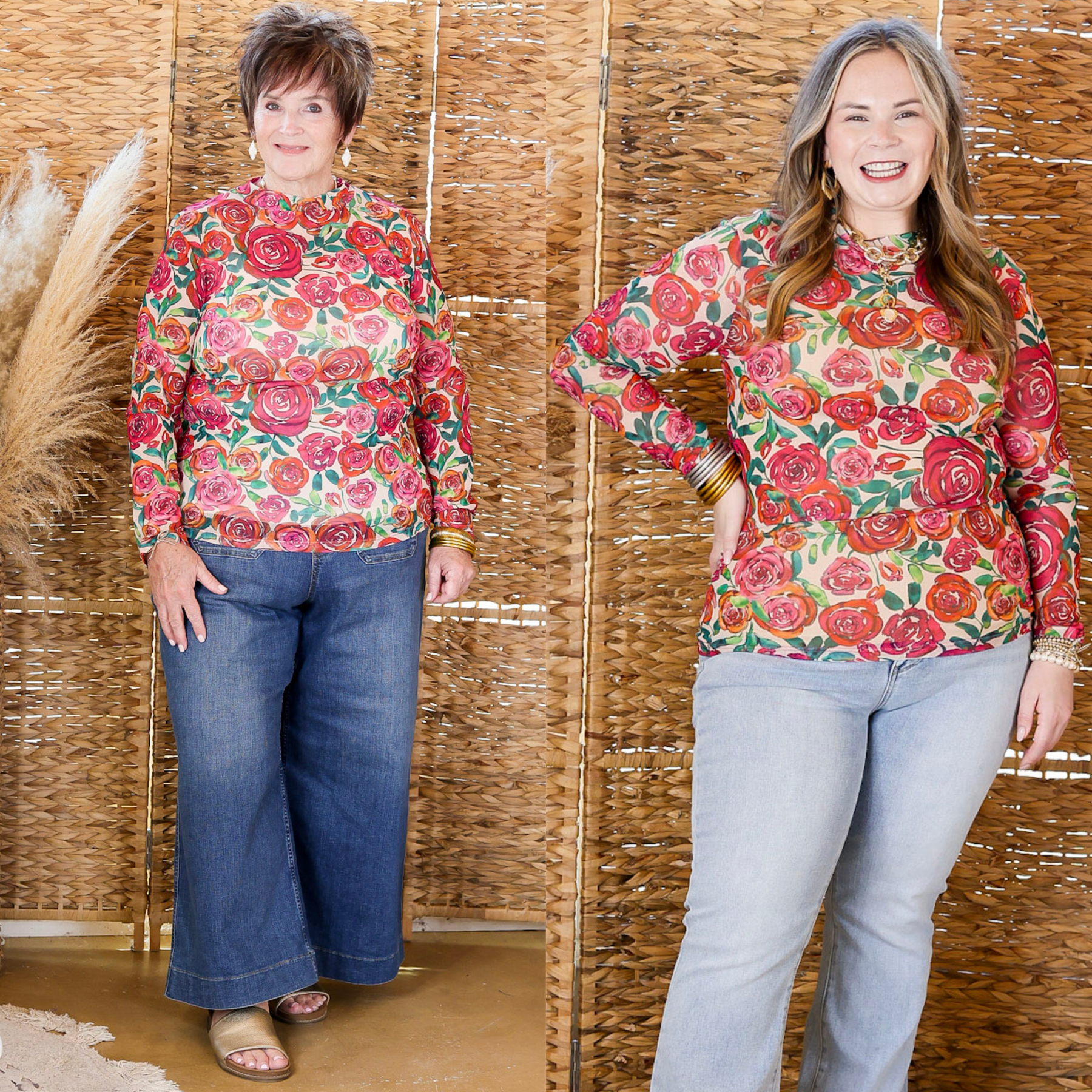Sheer Confidence Floral Print Mesh Long Sleeve Top