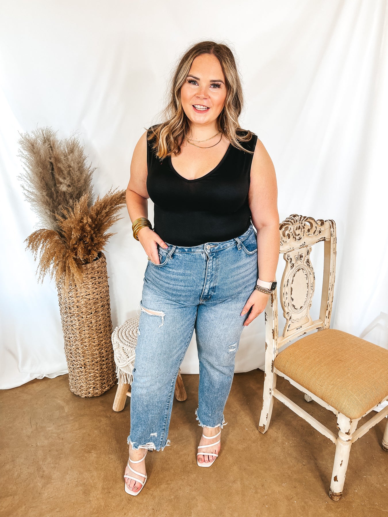 Perfect Night V Neck Tank Bodysuit in Black - Giddy Up Glamour Boutique