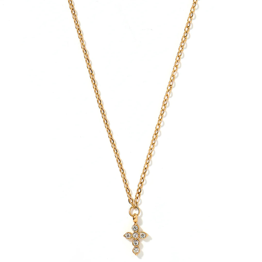 Gold Tone Necklace With Clear Crystal Cross Charm