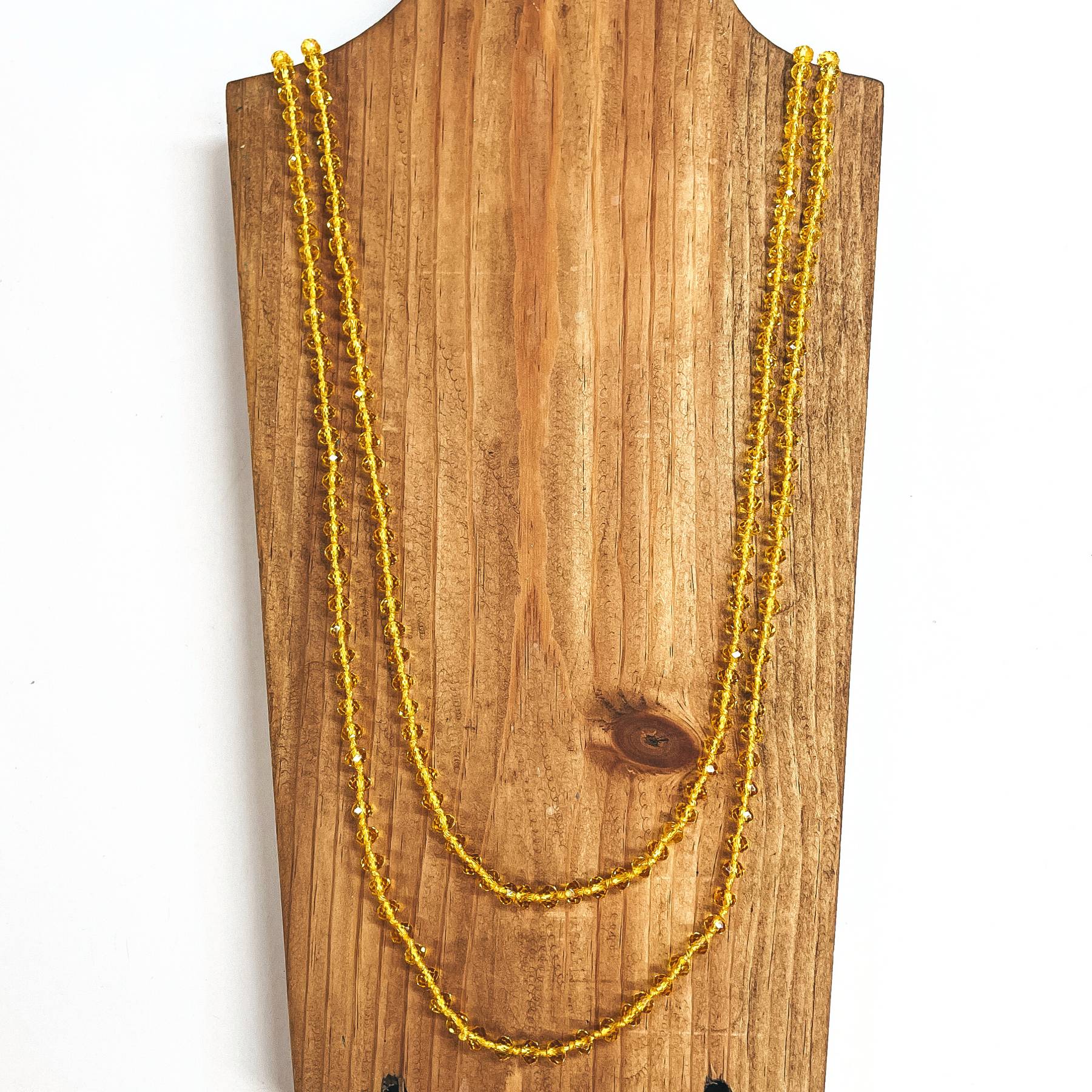 34 Inch Long Layering 6mm Crystal Strand Necklace in Clear Banana Yellow