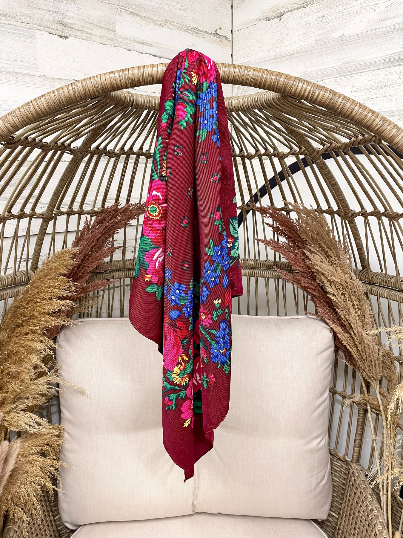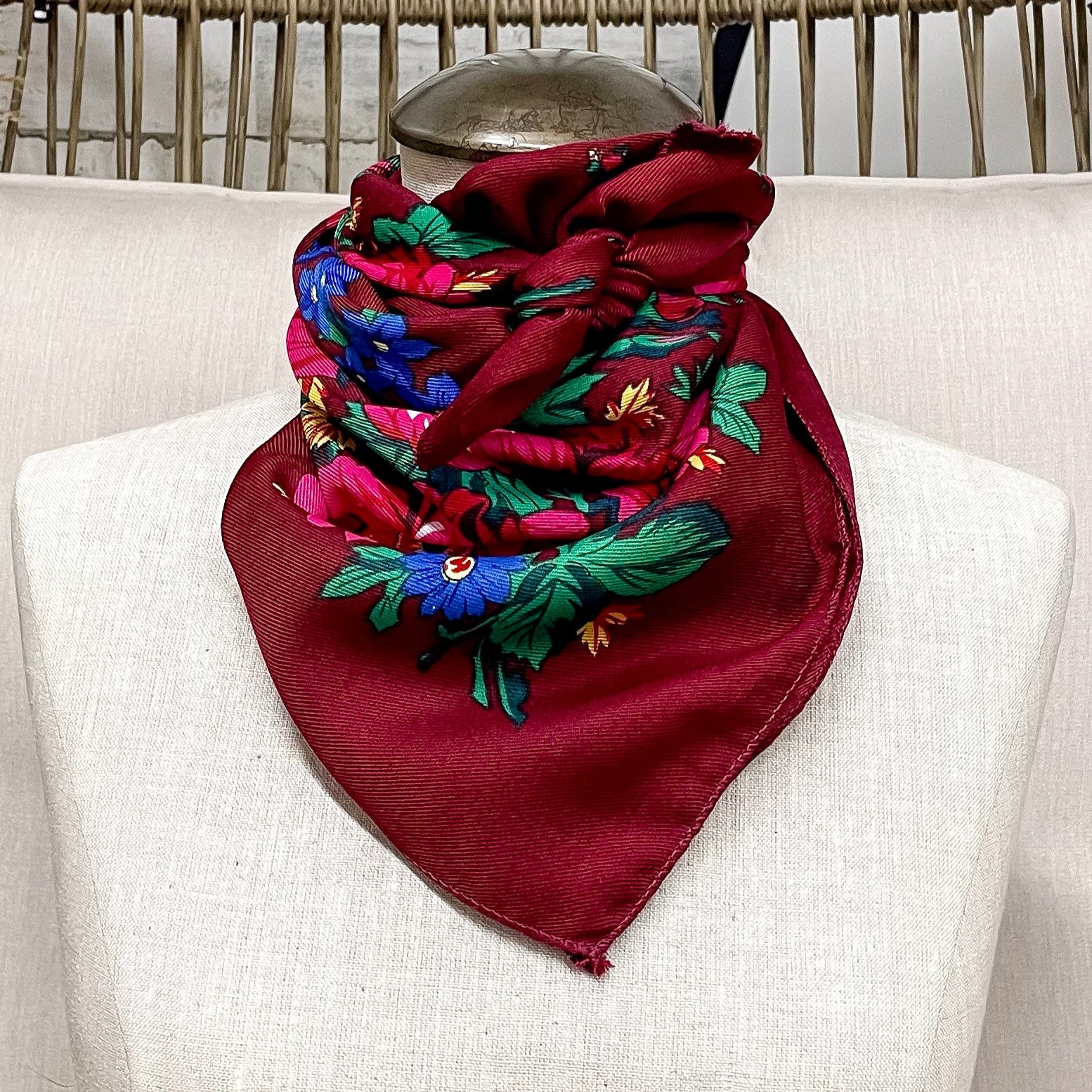 Meet Rodeo Rose the ultimate wild rag for the bold and the fearless. This striking accessory blends classic Western with a touch of feminine charm, featuring a rich maroon base adorned with vibrant floral blooms in shades of hot pink, blue, and golden yellow. Whether you wear it knotted around your neck, in your hair, or as a stylish bandana, this piece will have you standing out in any crowd. Rodeo Rose isn’t just an accessory—it’s a statement!