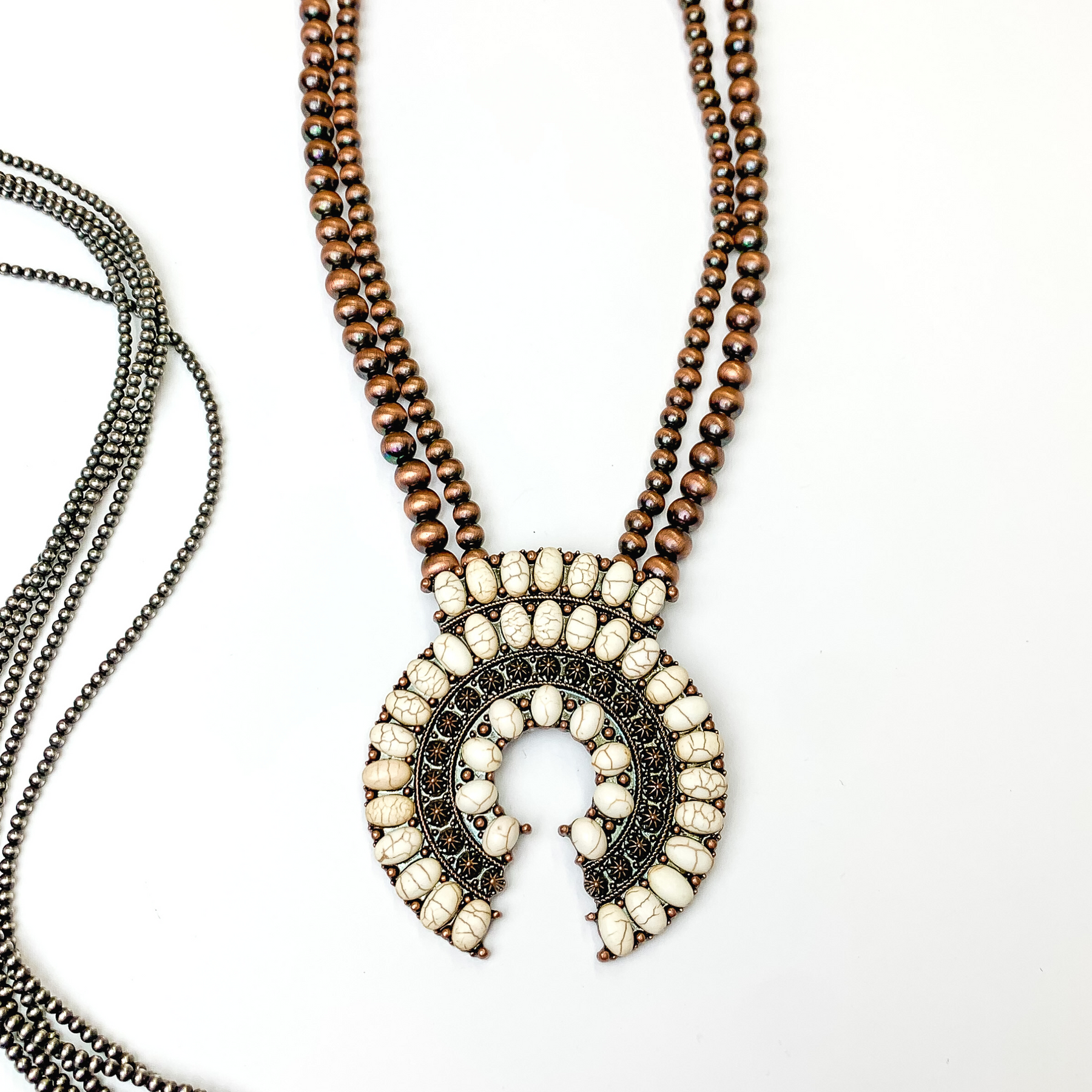 Necklace measures 28 inches long. Pendant measures 3 inches long.