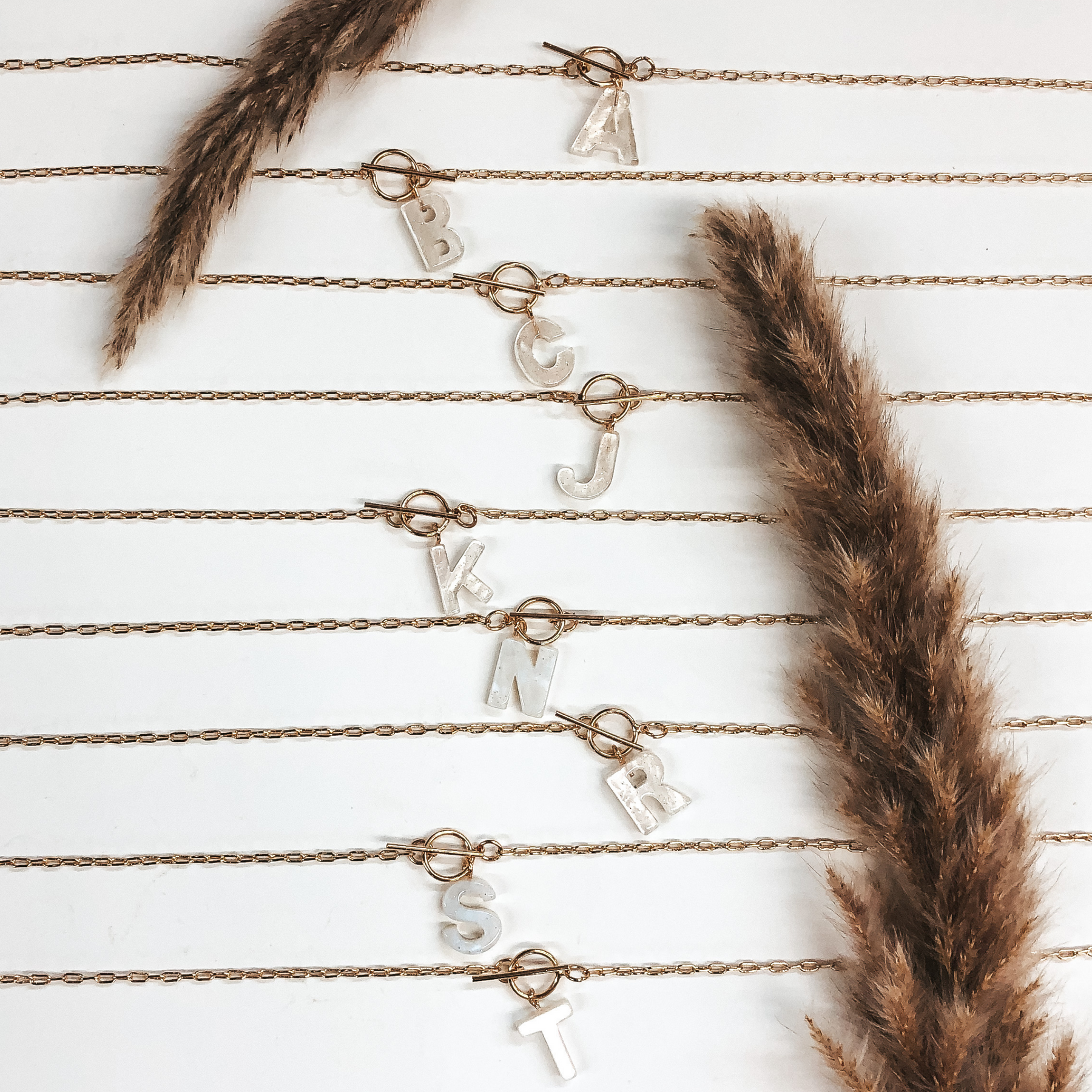 White Sparkle Initial Charm Gold Necklace - Giddy Up Glamour Boutique