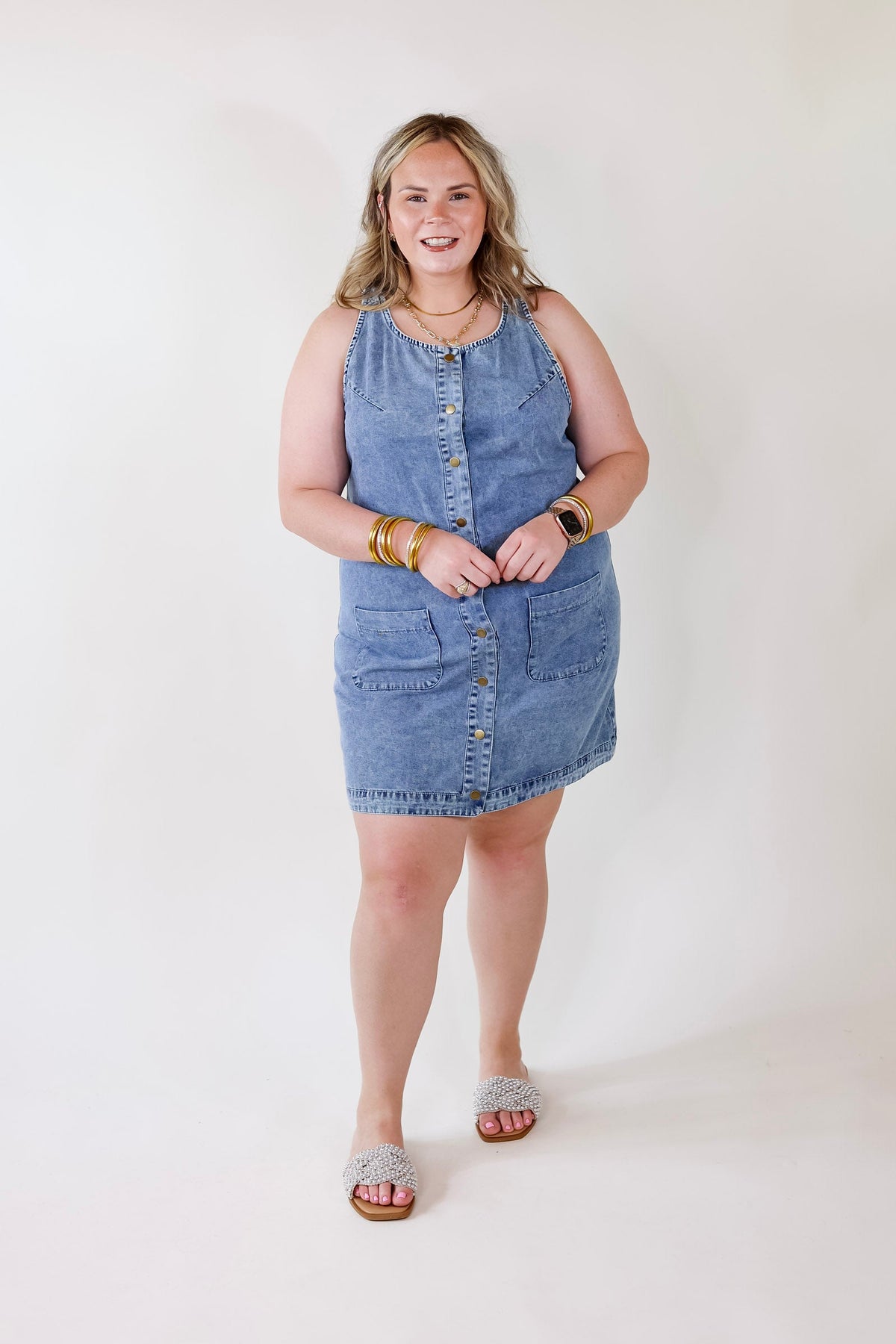The Girl Next Door Denim Button Up Dress in Light Wash