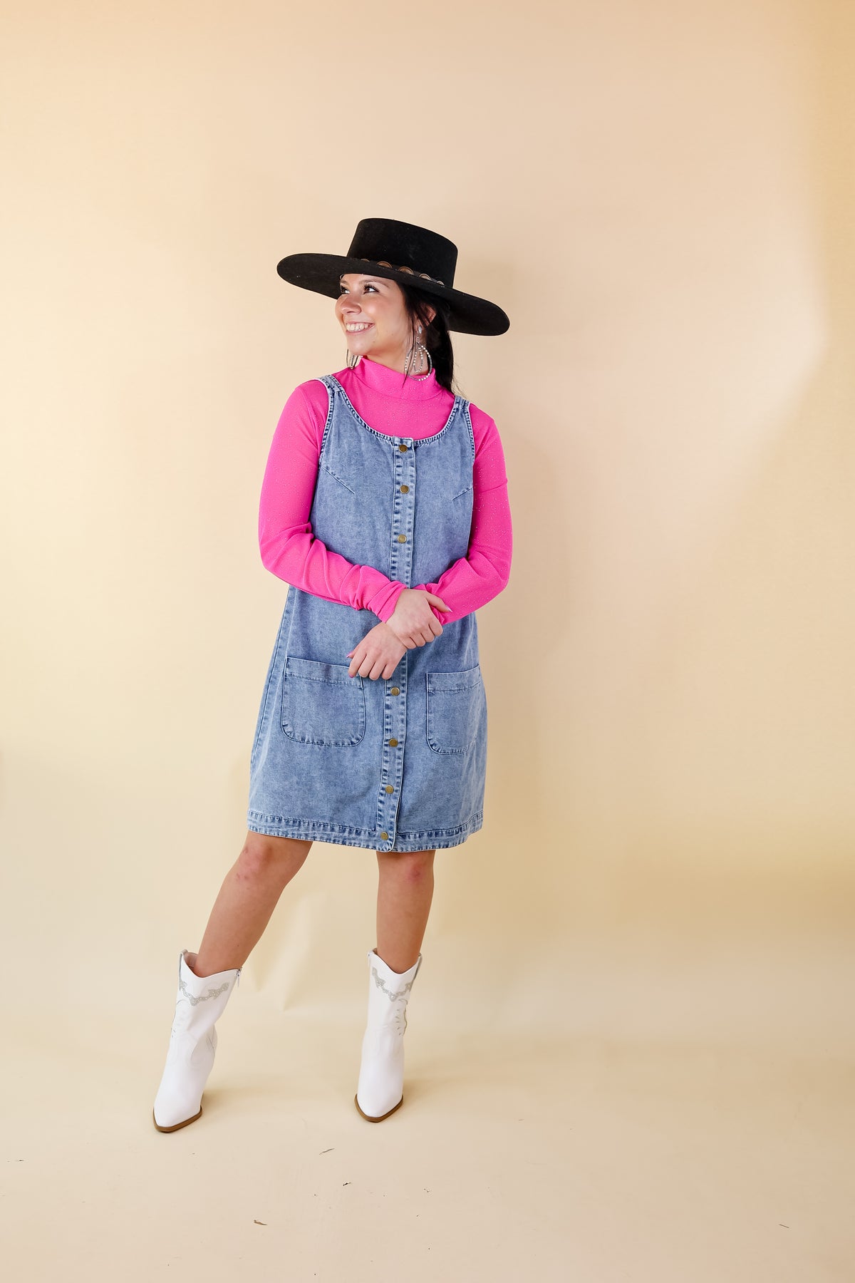 The Girl Next Door Denim Button Up Dress in Light Wash - Giddy Up Glamour Boutique