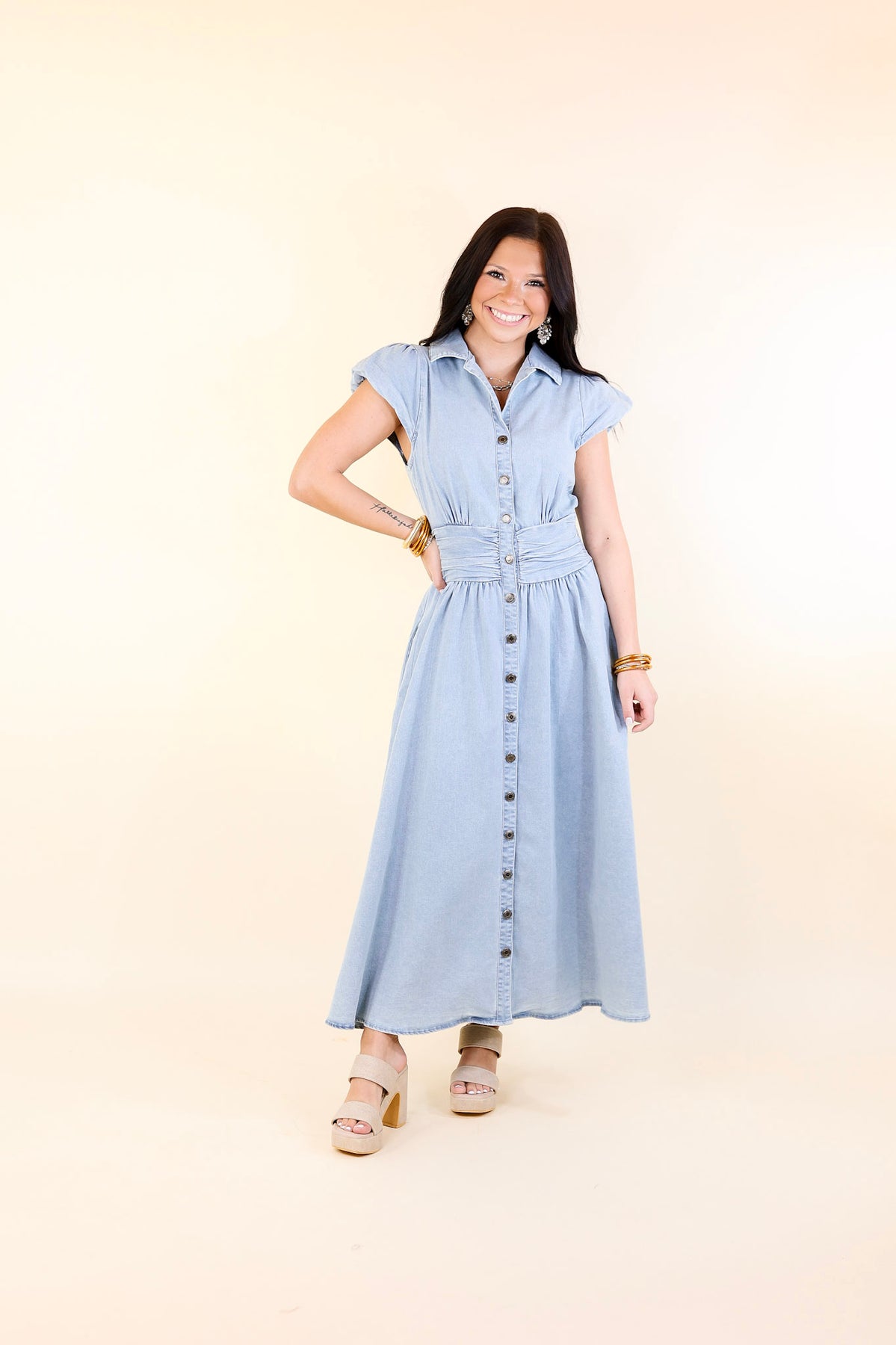 Timeless Threads Midi Maxi Dress with Smocked Bodice in Light Wash