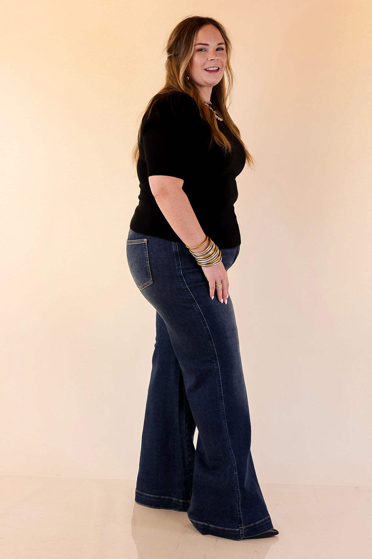 Judy Blue | Perfectly Poised Tummy Control Retro Wide Leg Trouser Jean in Dark Wash
