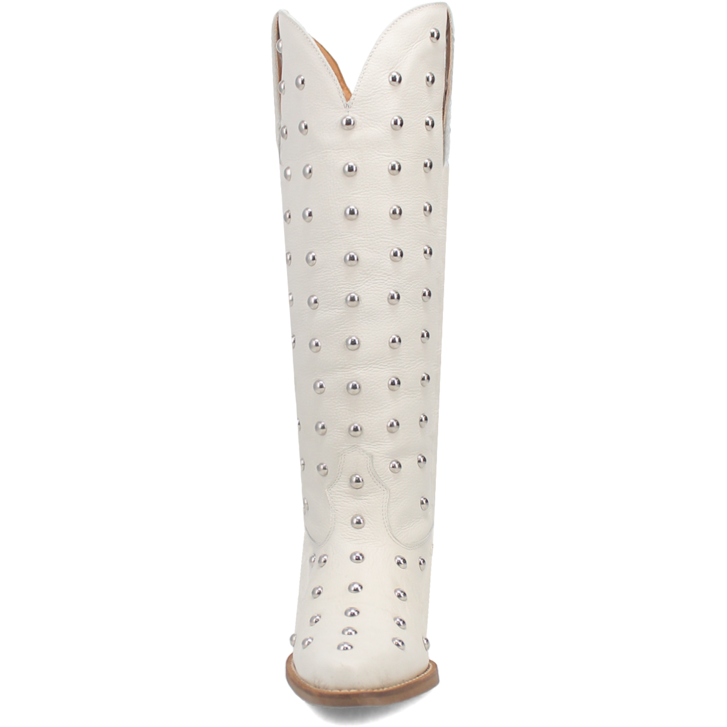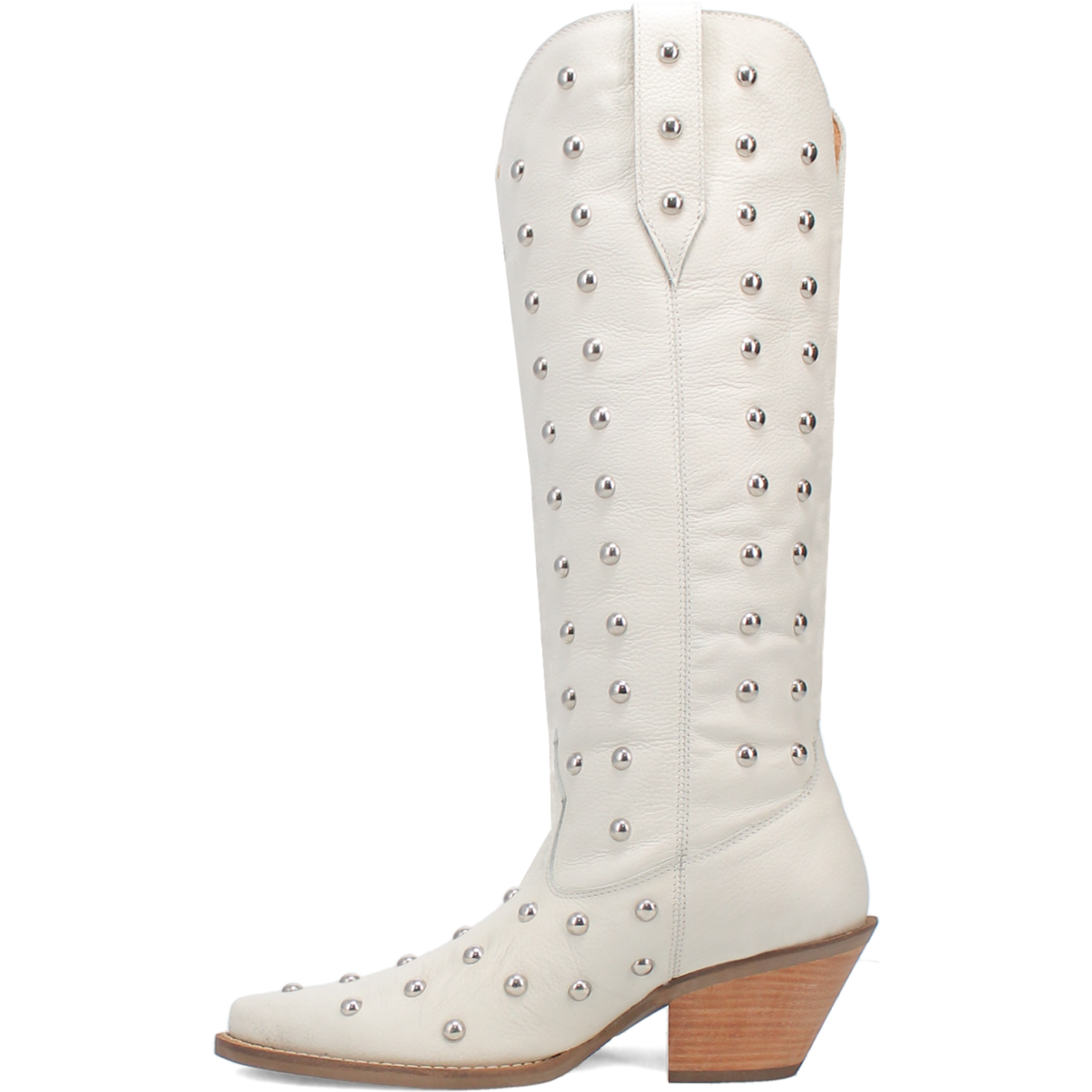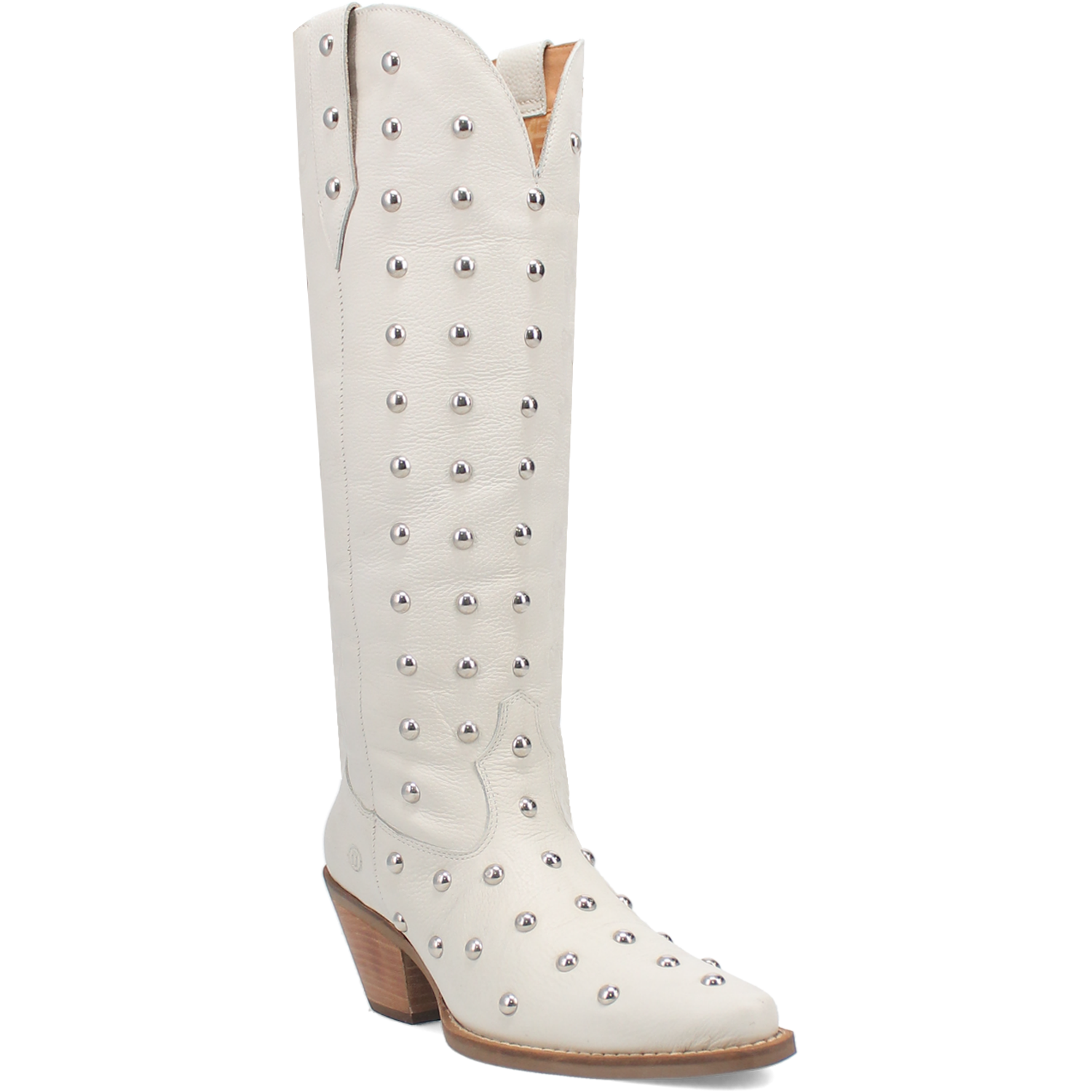 Elevate your style with the Online Exclusive Dingo Broadway Bunny Leather Boot in White! The classic black leather is adorned with studded details for an edgy touch. Perfect for any occasion, this boot is a must-have for fashionistas looking to make a statement.