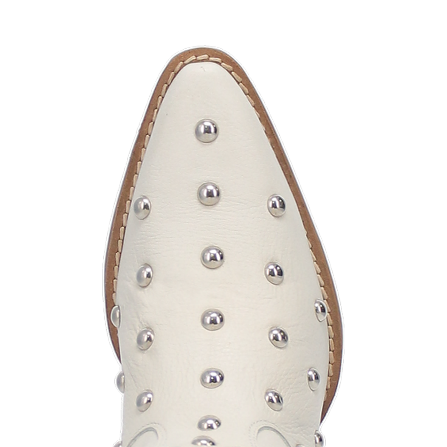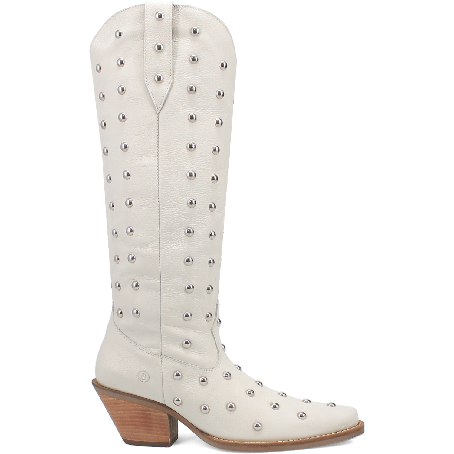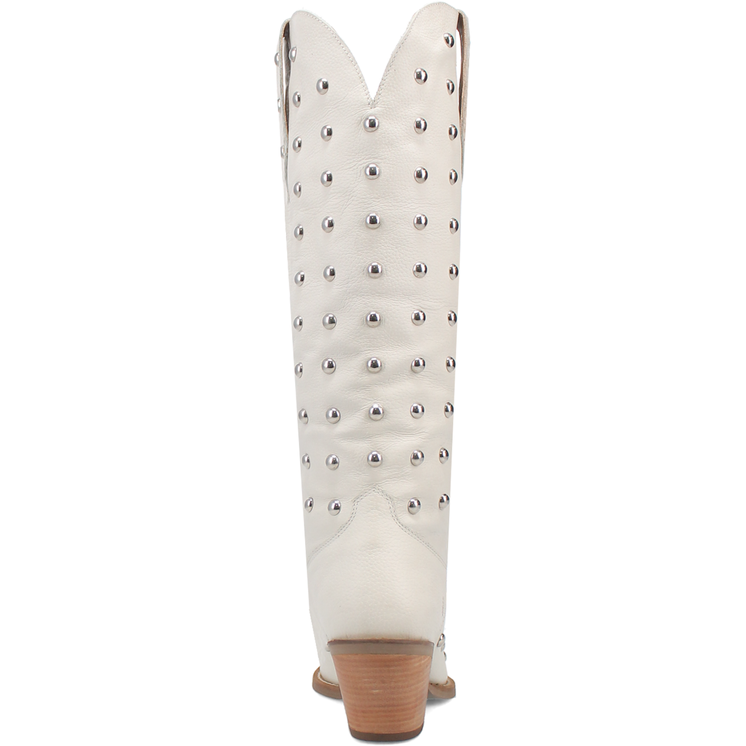 Elevate your style with the Online Exclusive Dingo Broadway Bunny Leather Boot in White! The classic black leather is adorned with studded details for an edgy touch. Perfect for any occasion, this boot is a must-have for fashionistas looking to make a statement.