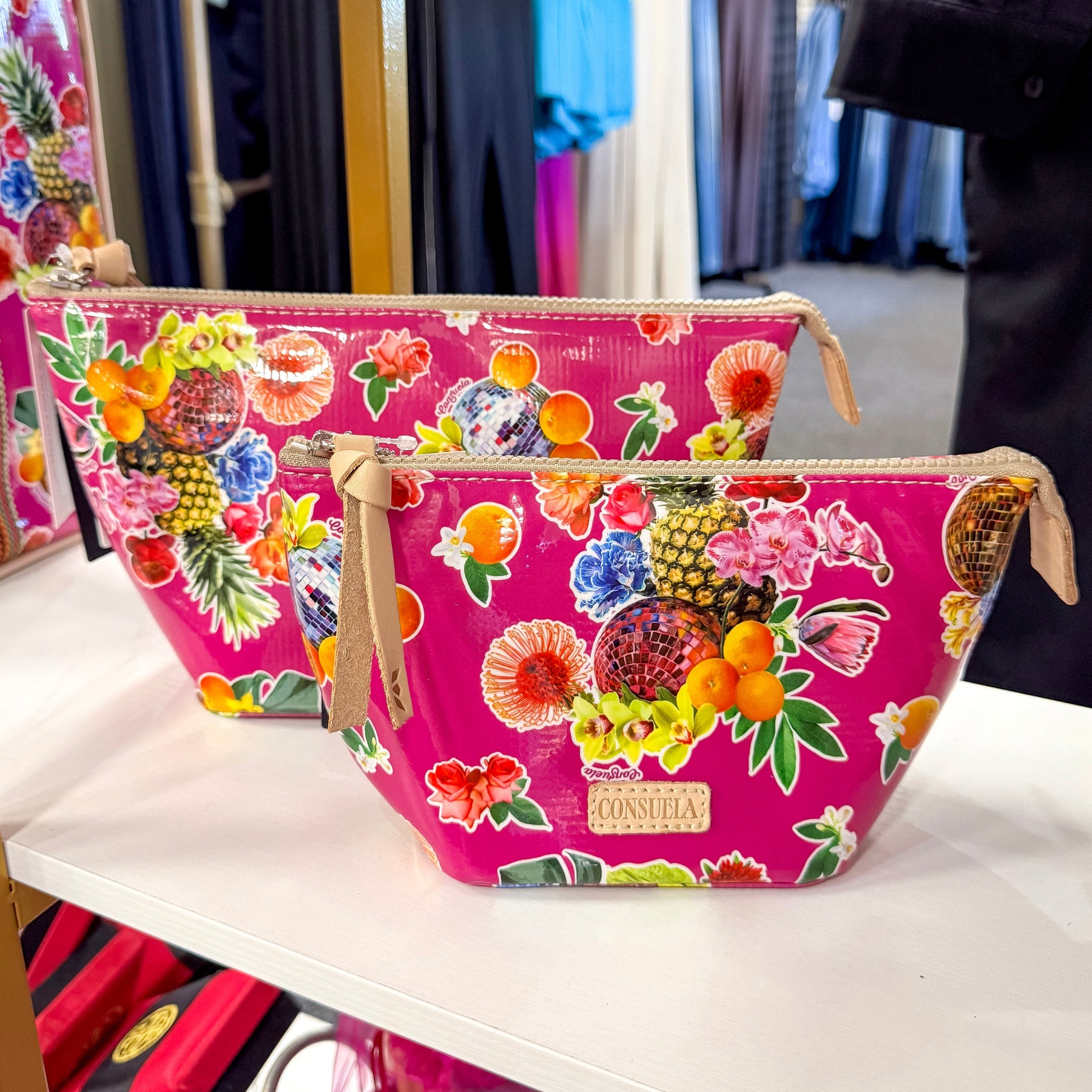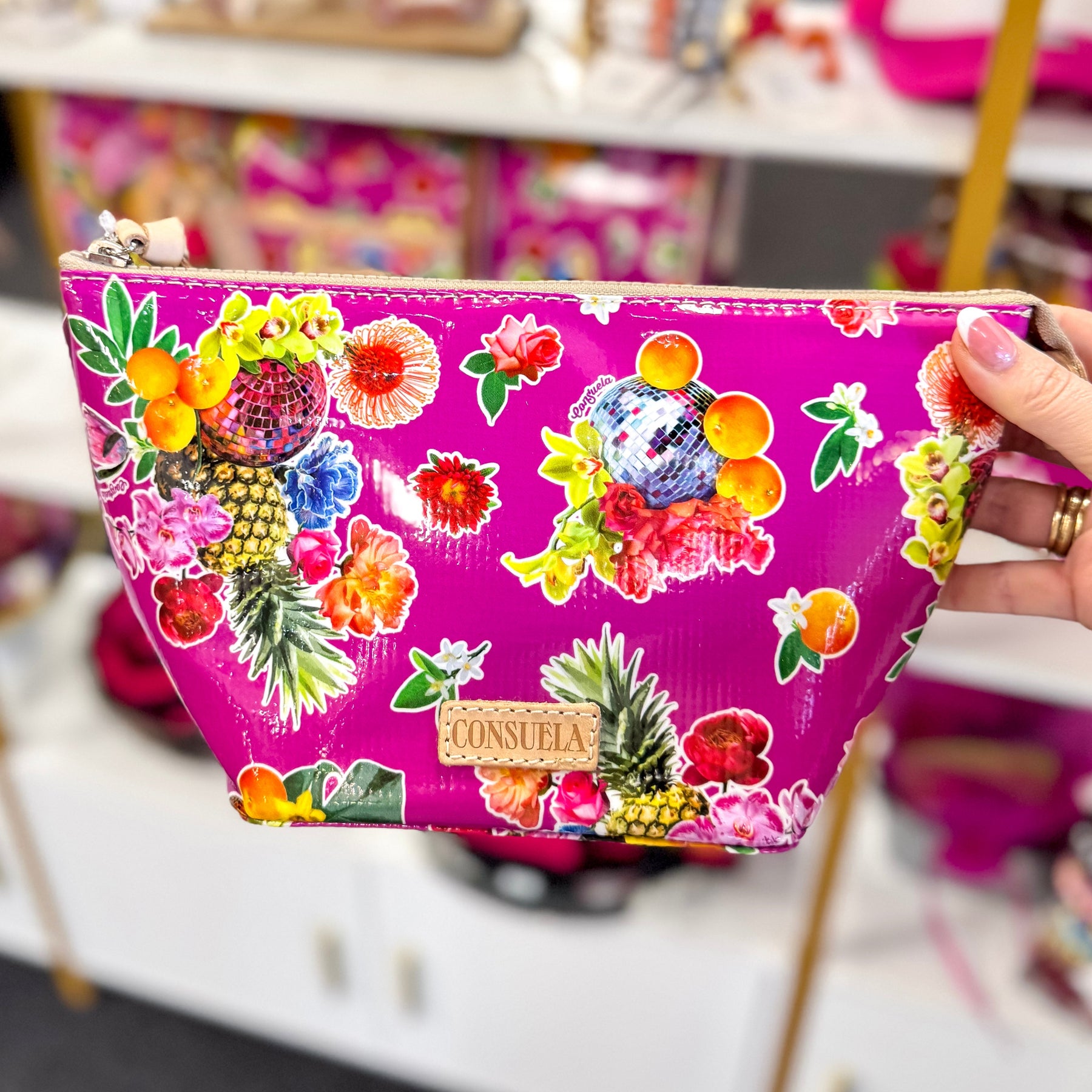 Juicy florals and fruits come alive on a bright shade of berry. Reimagined to store cosmetics, tech gear, art supplies, and any odds & ends. Upgraded with a generous opening, spacious interiors, and a sturdy base.