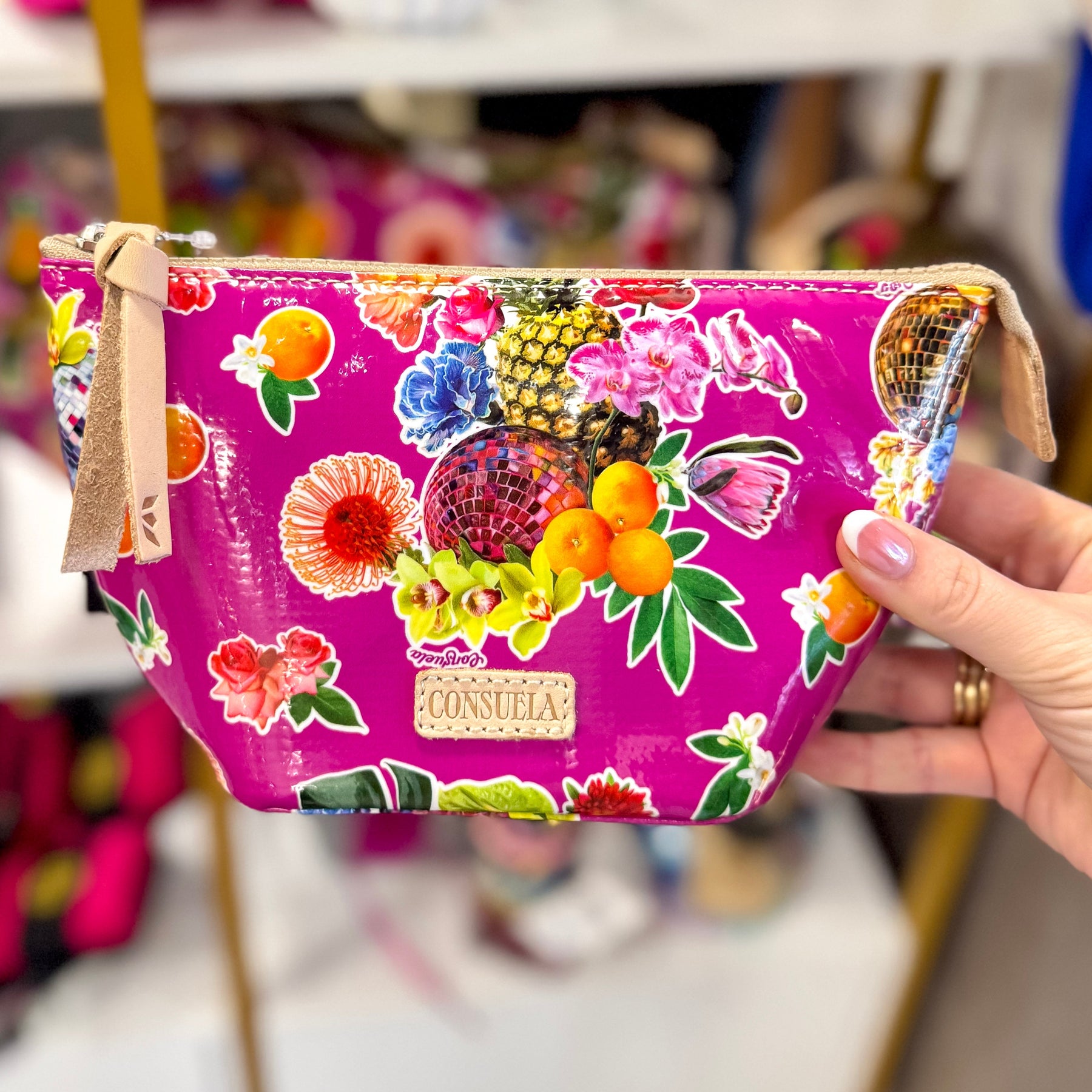Juicy florals and fruits come alive on a bright shade of berry. Reimagined to store cosmetics, tech gear, art supplies, and any odds & ends. Upgraded with a generous opening, spacious interiors, and a sturdy base.