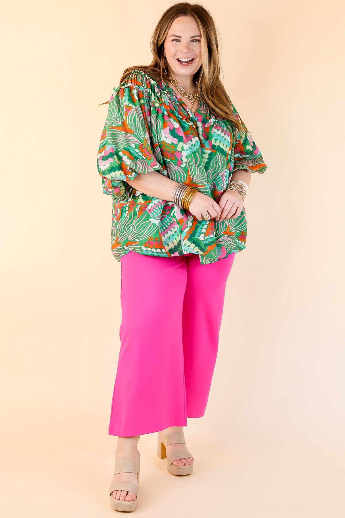 Elevate your wardrobe with our "Effortless Style" top, the perfect blend of comfort and chic fashion. This versatile piece is designed to enhance your everyday look with its flattering V-neckline and trendy elbow-length sleeves, providing a sophisticated touch to any outfit. Crafted from high-quality, breathable fabric, this top showcases a stunning tropical print, bringing a splash of vibrant colors and exotic vibes to your attire. Whether you're heading to a casual brunch or a day at the beach, the "Effortless Style" top ensures you stay stylish and comfortable throughout the day.