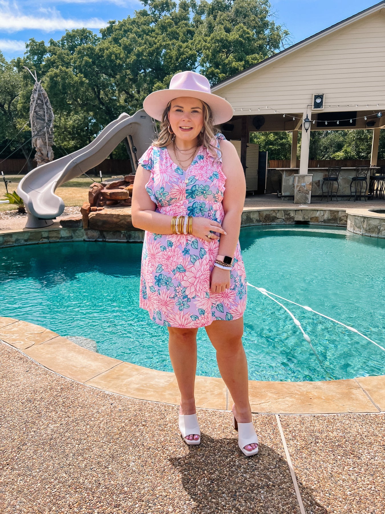 Sunshine On My Mind Floral Ruffle Cap Sleeve Dress in Lilac Pink
