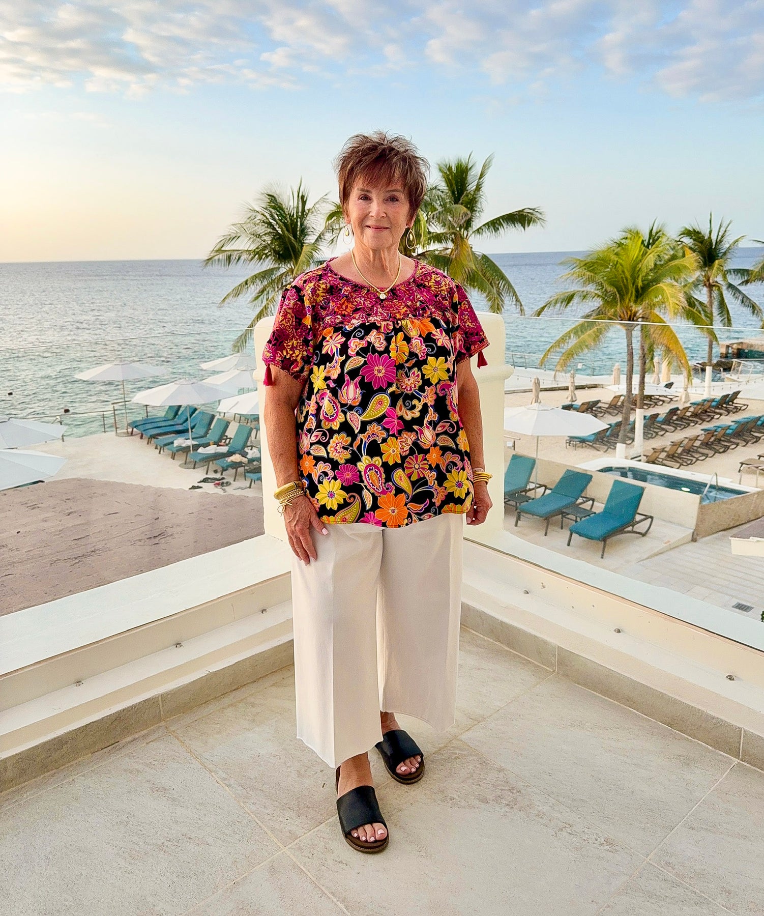 Elevate your everyday style with our enchanting 'Sweet and Charming' top. Delicate purple floral embroidery dances across this top, infusing every moment with whimsical charm. The scoop neckline offers a flattering silhouette, while playful tassels adorn the sleeves, adding a touch of irresistible allure. Whether you're strolling through a garden or meeting friends for brunch, this top is sure to make a statement. Embrace the sweetness of spring with the 'Sweet and Charming' top. Available in sizes small to 3XL.