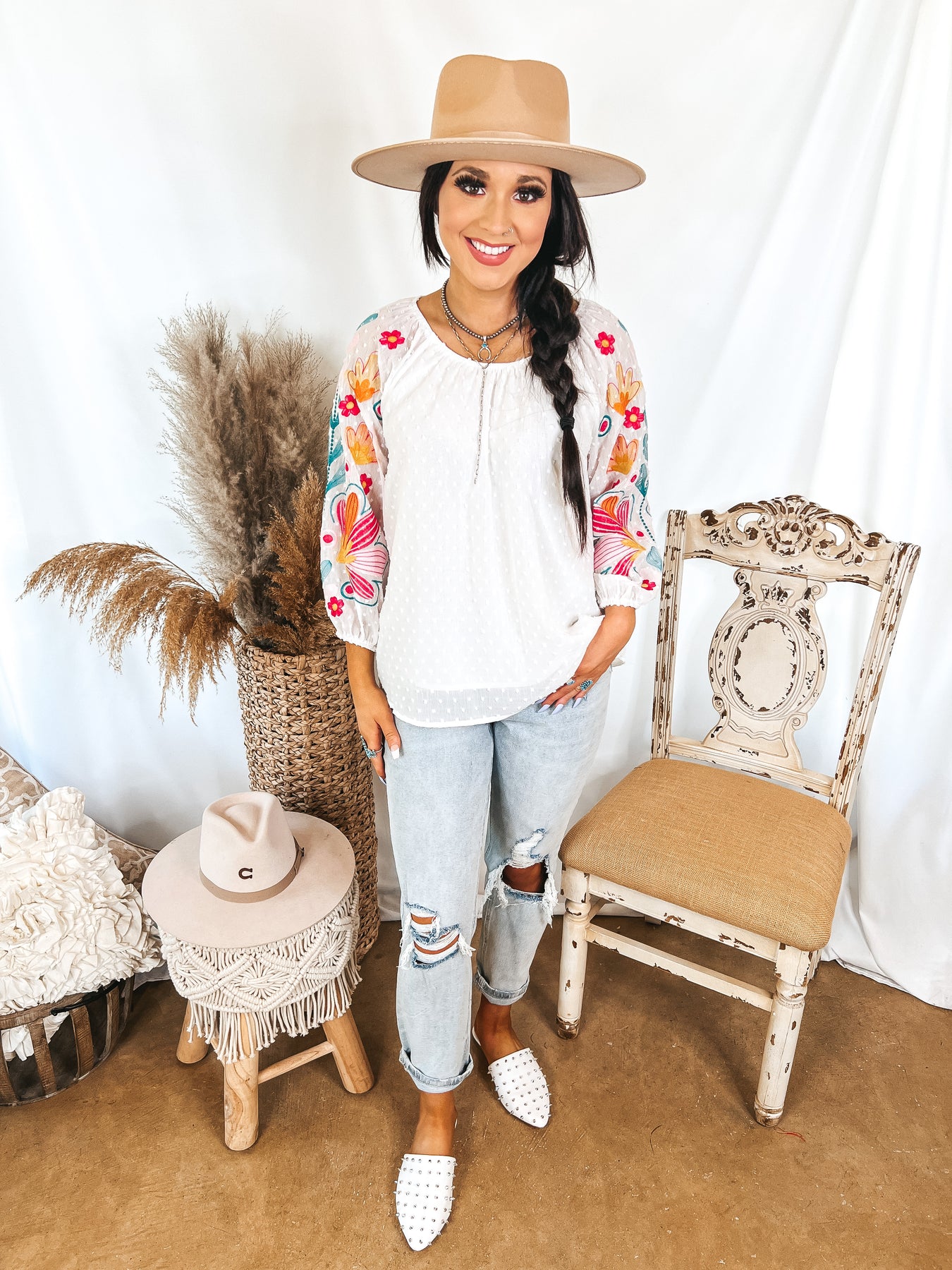 Right About You Floral Embroidered 3/4 Sleeve Top in White
