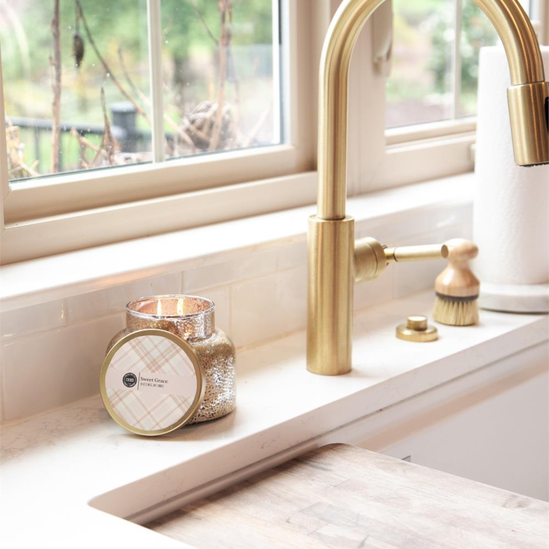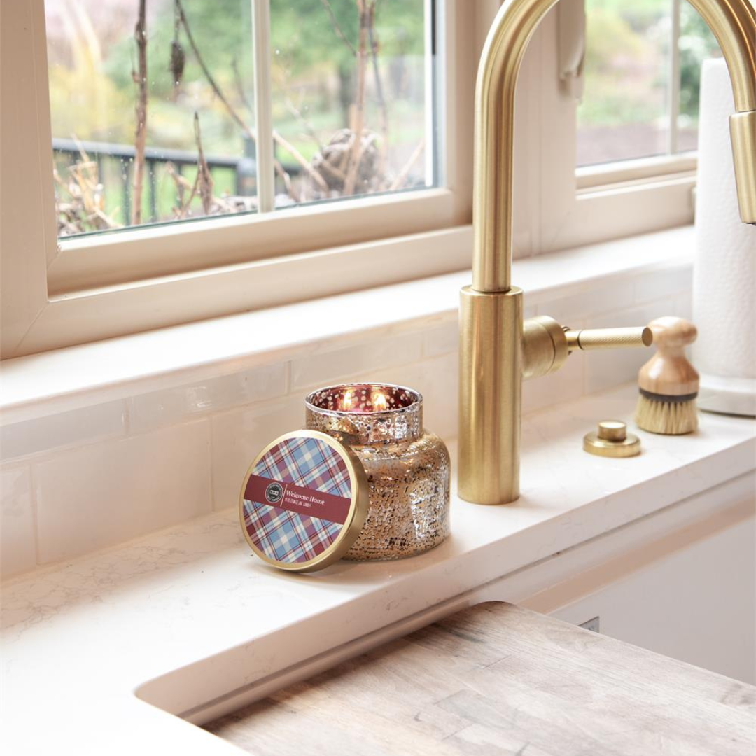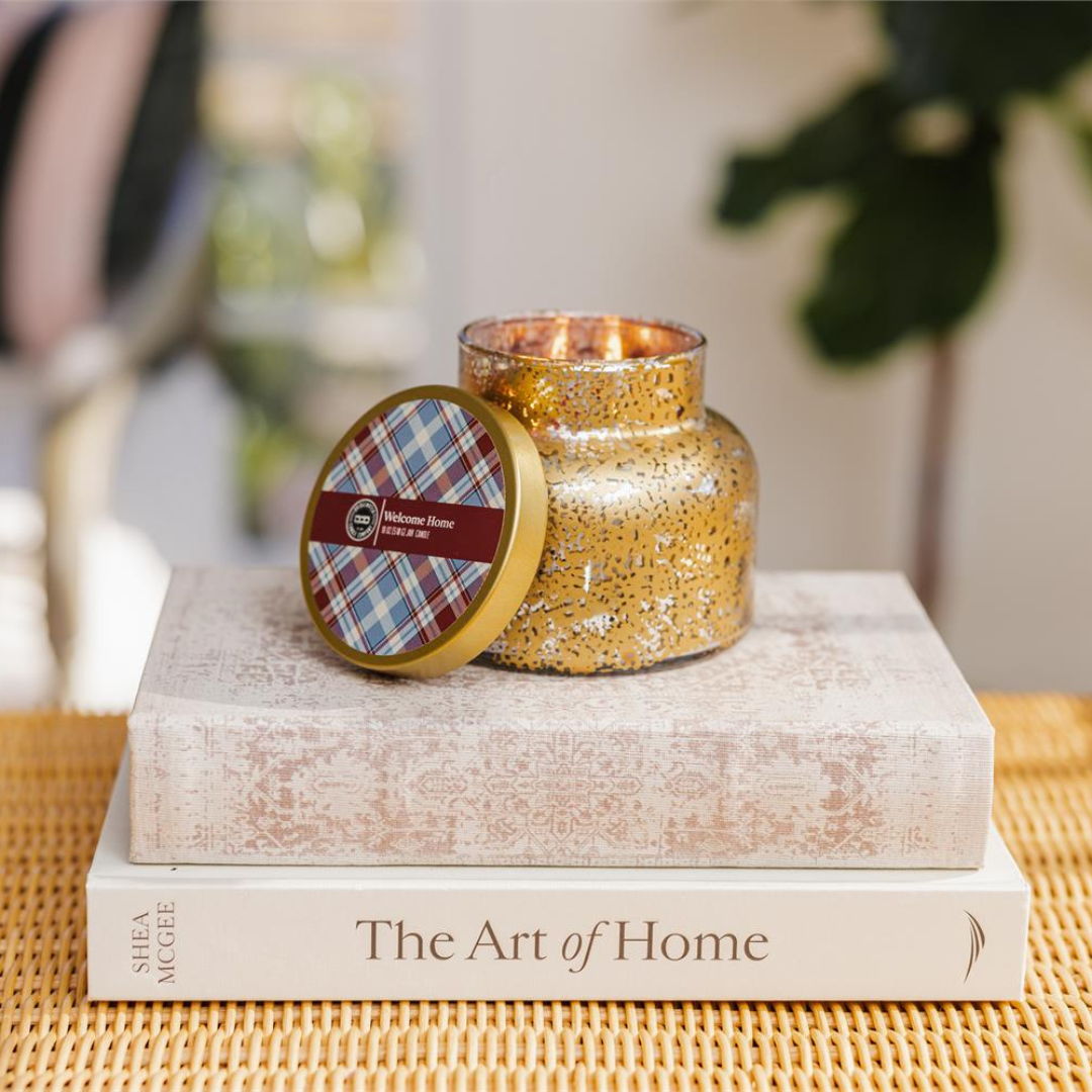 Elevate your home's ambiance with our dazzling Welcome Home Mercury Jar Candle. Featuring a radiant gold and silver mercury finish, it adds a touch of magic to any occasion, from festive dinners to cozy gatherings. Enjoy a 65-hour burn time.
