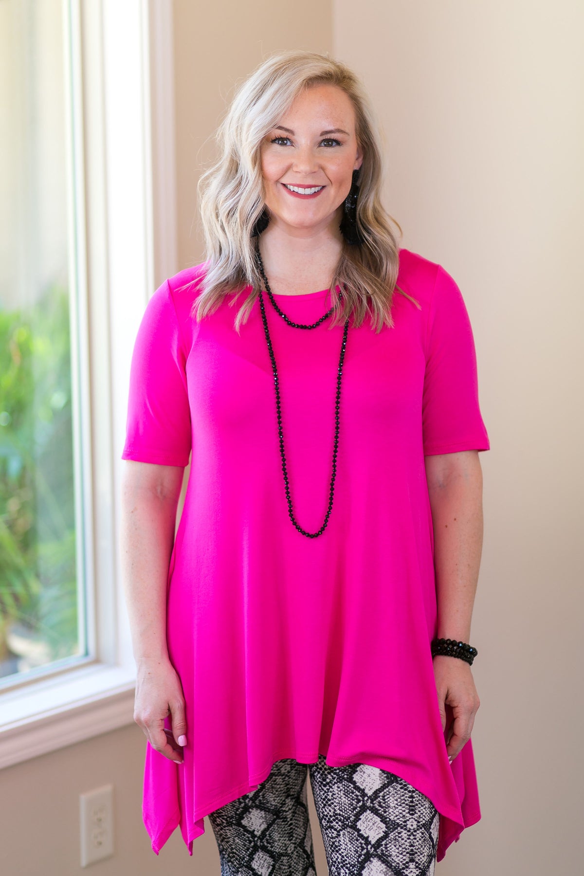Whenever This Happens Solid Handkerchief Tunic Top in Hot Pink