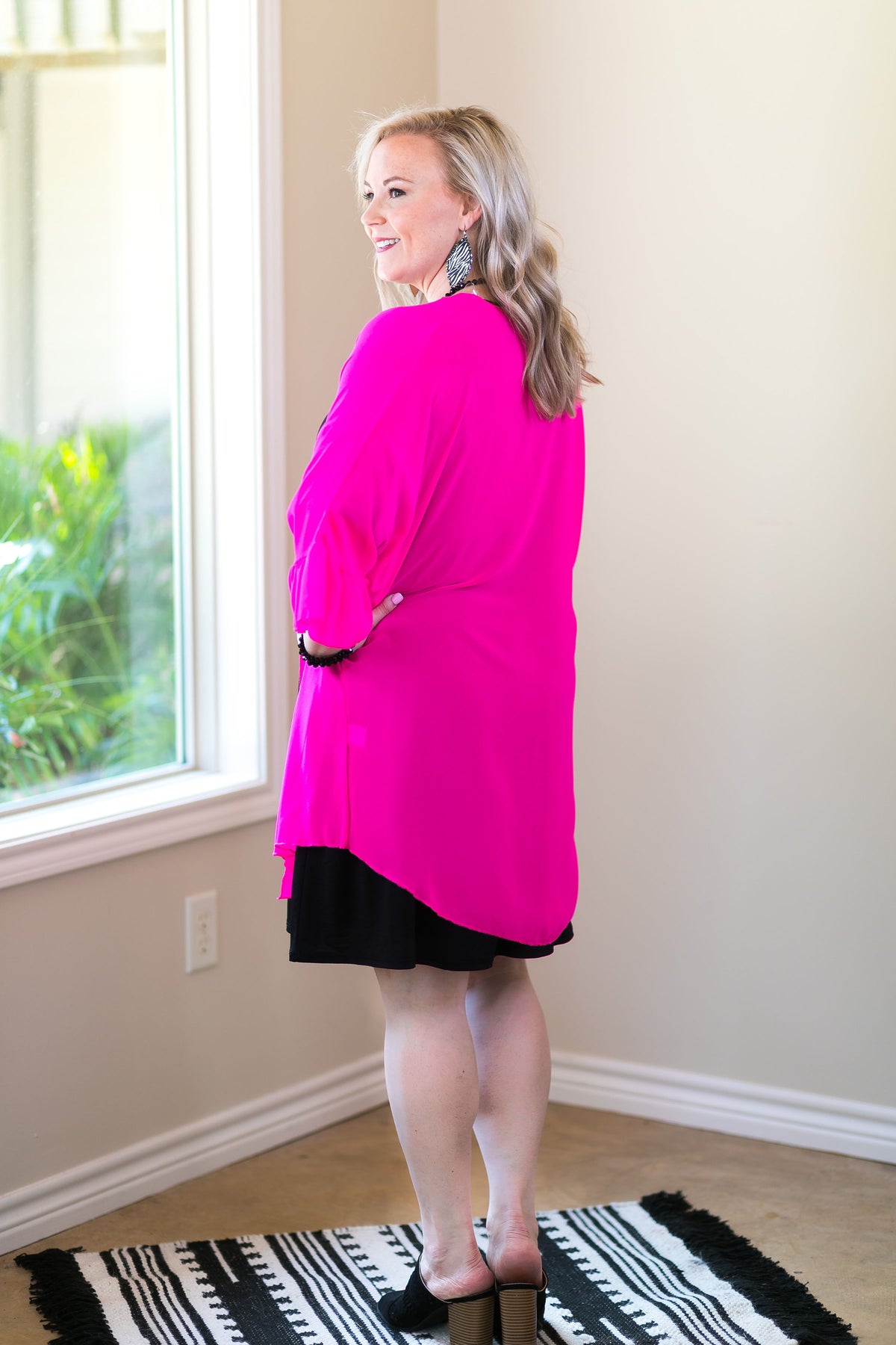 Tell Me About It Sheer Kimono with Ruffle Sleeves in Fuchsia Pink