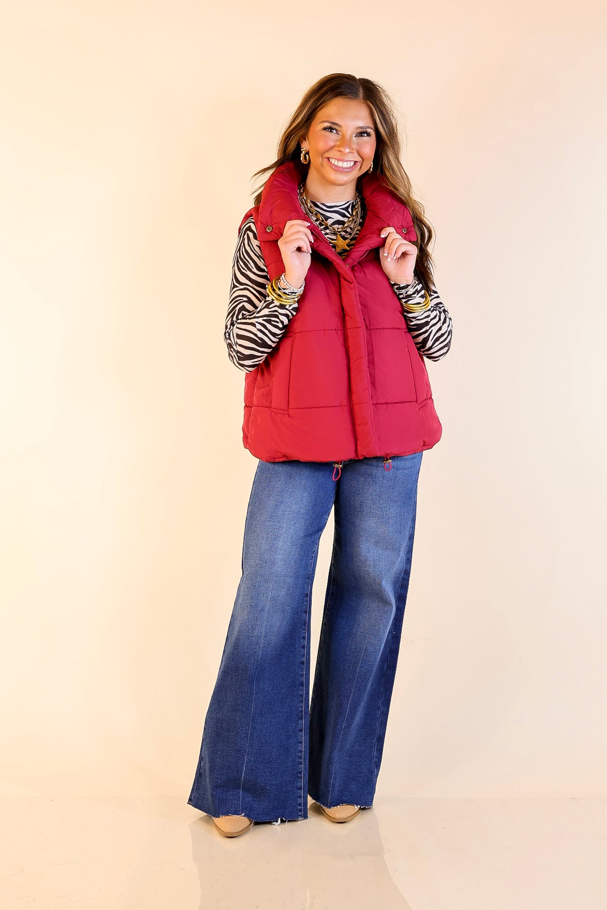 Evergreen Escape High Neck Puffer Vest in Maroon