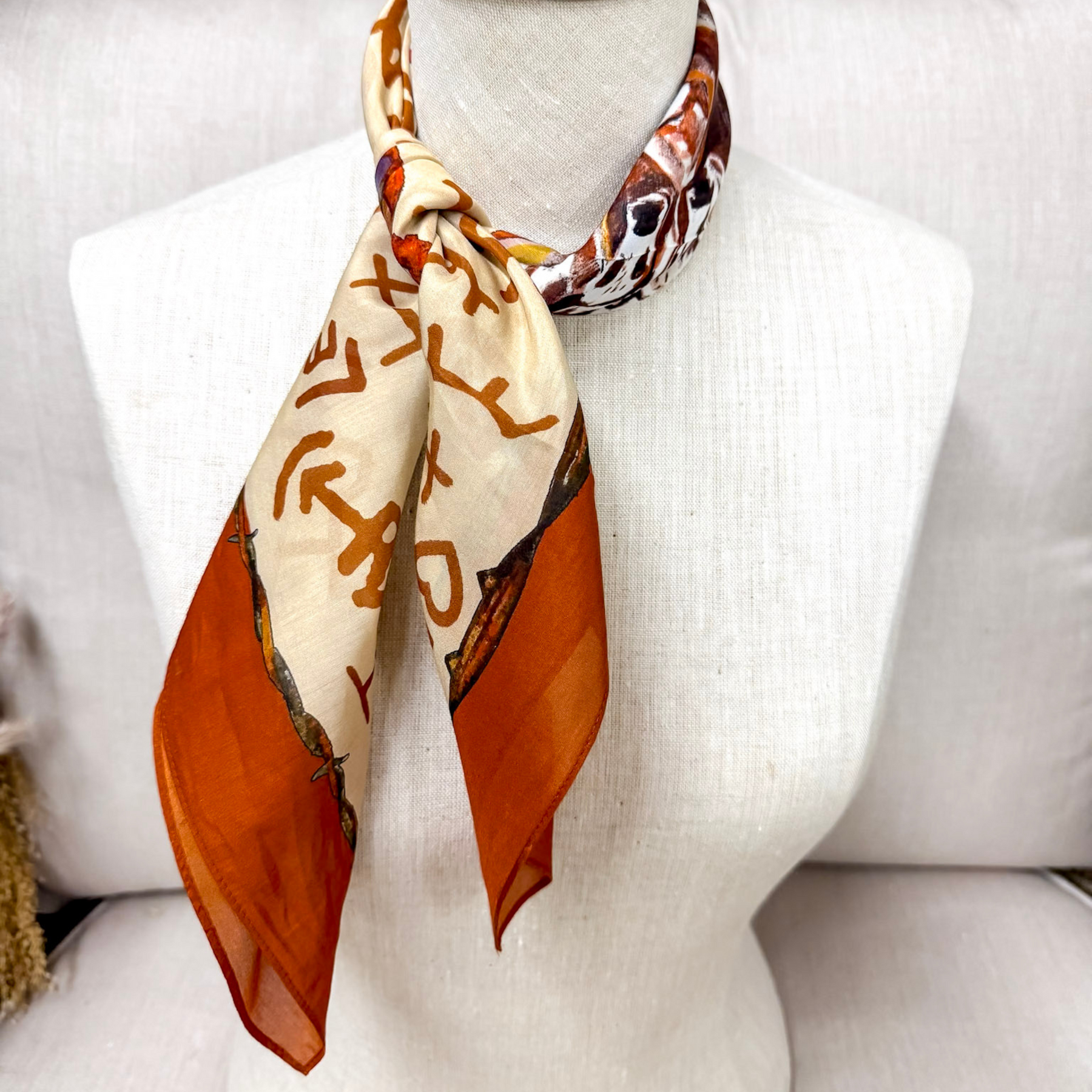 Introducing our latest addition to the lineup: XOXO Art & Co. Wild Rag Scarves! Hand-designed and crafted right here in Texas by a dynamic mom and daughter duo, these scarves embody the spirit of Giddy Up Glamour. Measuring 26x26 inches, they are crafted from a luxurious blend of 70% cotton and 30% silk, ensuring both style and comfort. Wrap yourself in the essence of Texas with these beautifully crafted accessories, perfect for adding a touch of Western flair to any outfit.