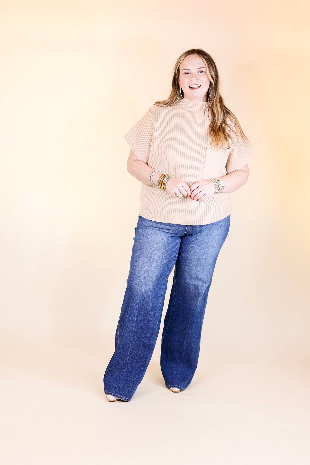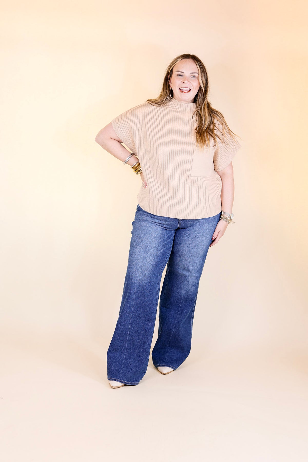 You'll look chic, cozy, and ready for any adventure in our City Sights Sweater Top! Featuring a mock neckline, a front pocket, and a cap sleeve, this timeless bone cream piece brings all-day comfort and style that lasts from dawn till dusk. Dare to explore the city in style!