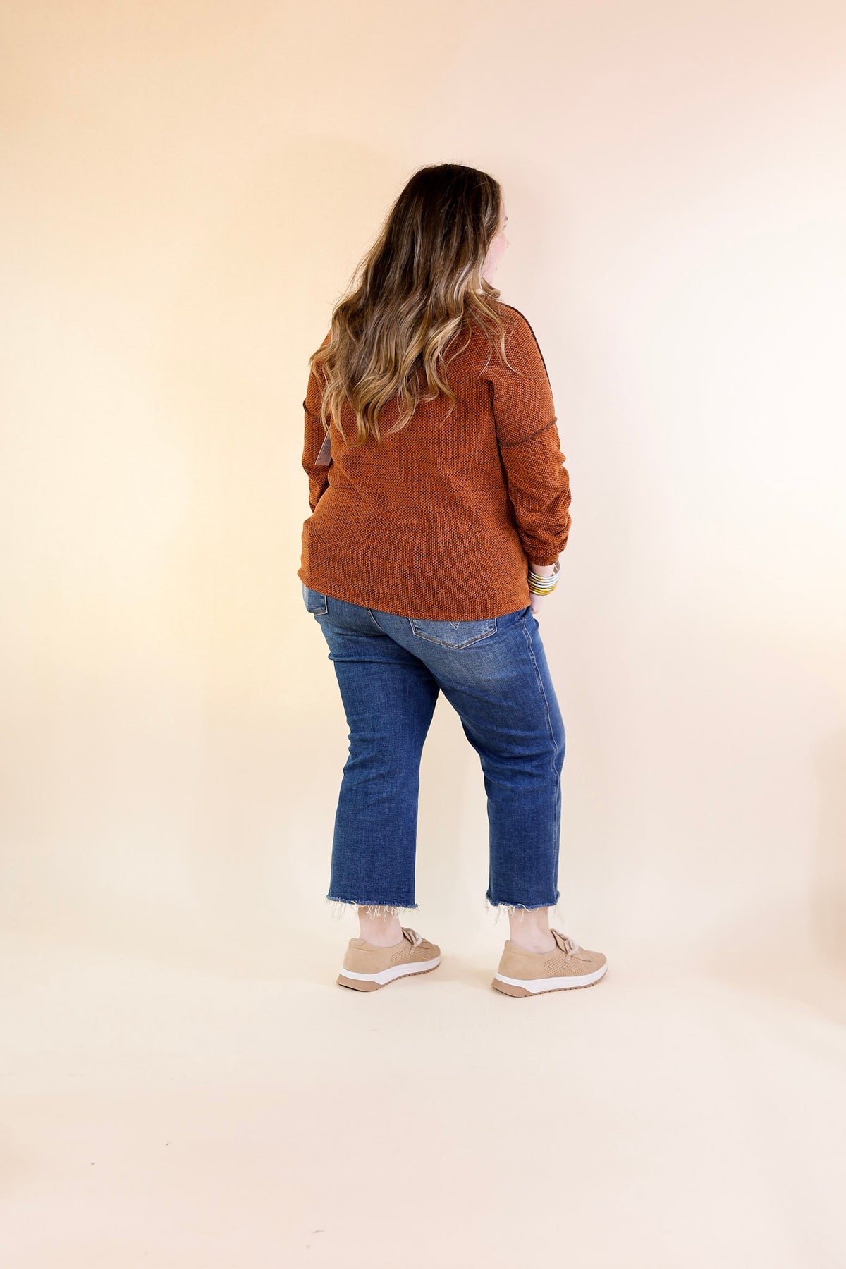 Fall Festival Long Sleeve Knit Top with Hem Detailing in Rust Orange