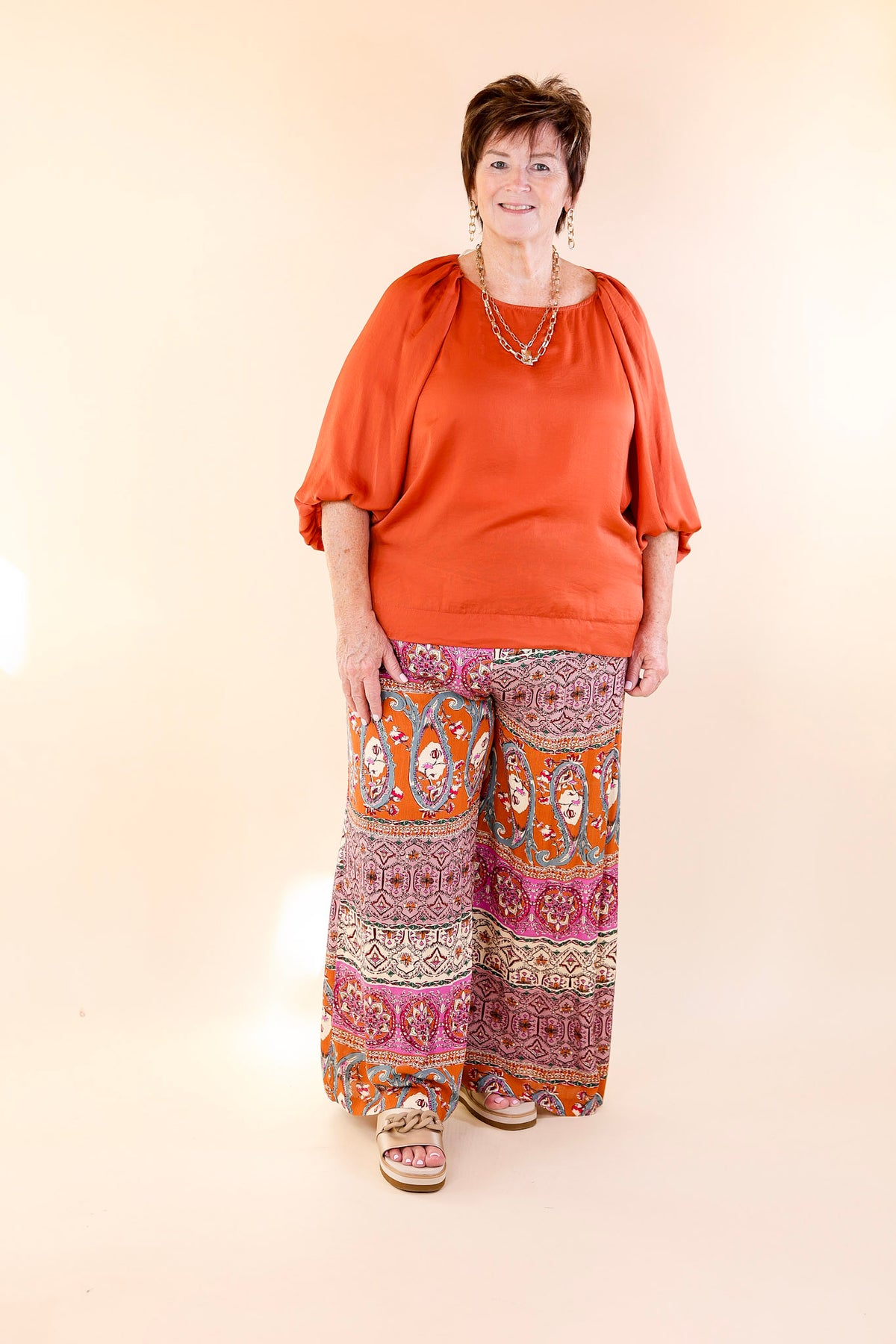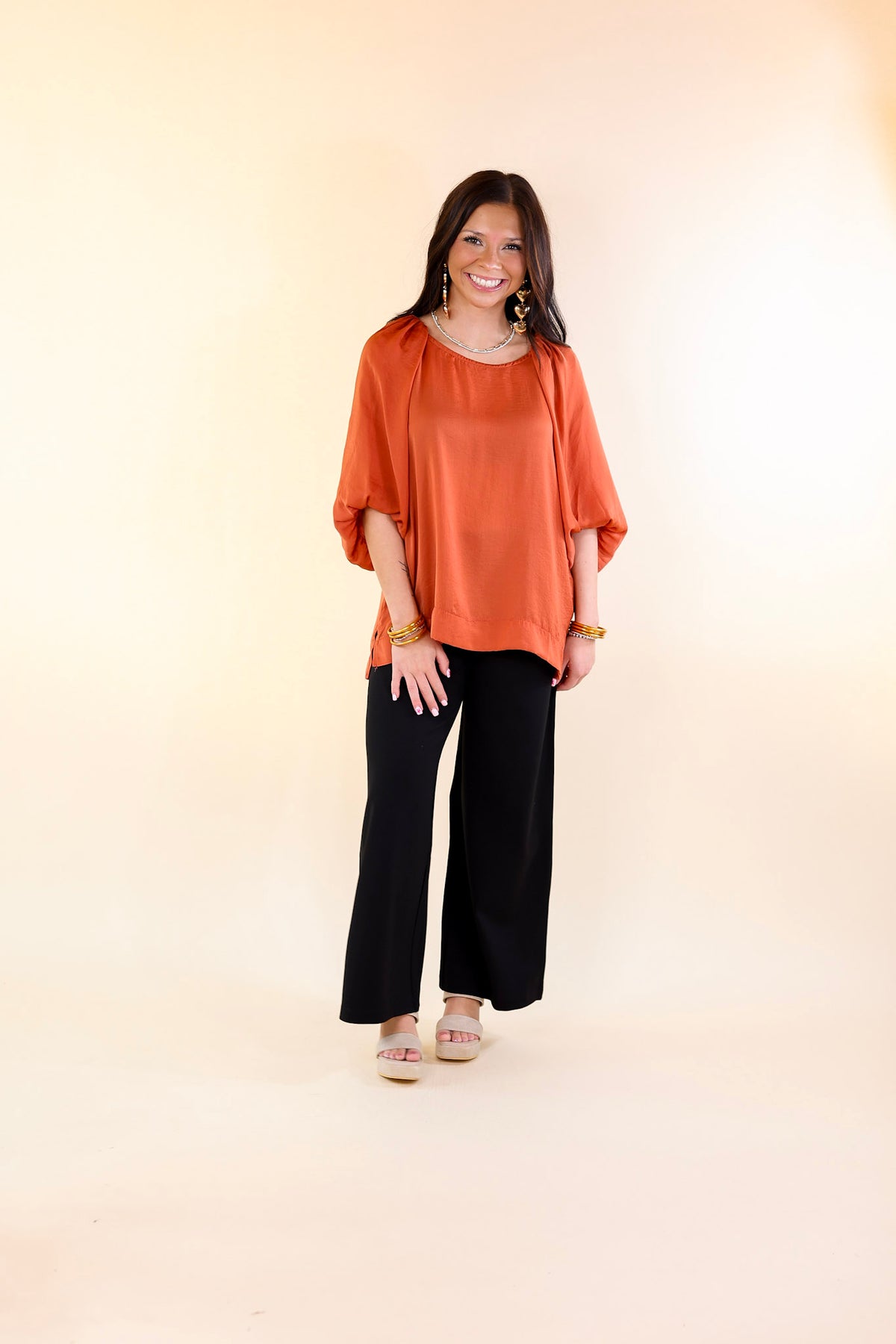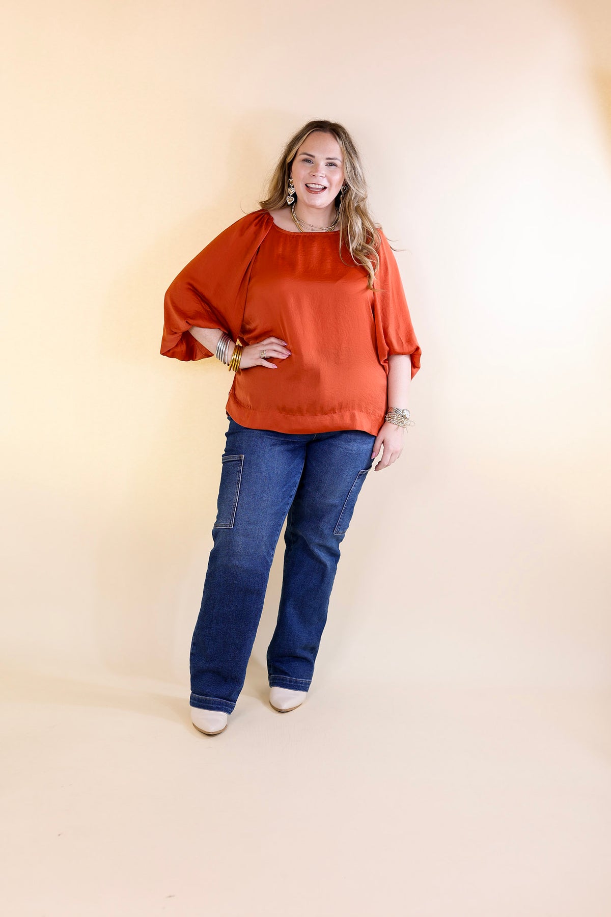 Flash A Smile Half Balloon Sleeve Satin Blouse in Red Orange