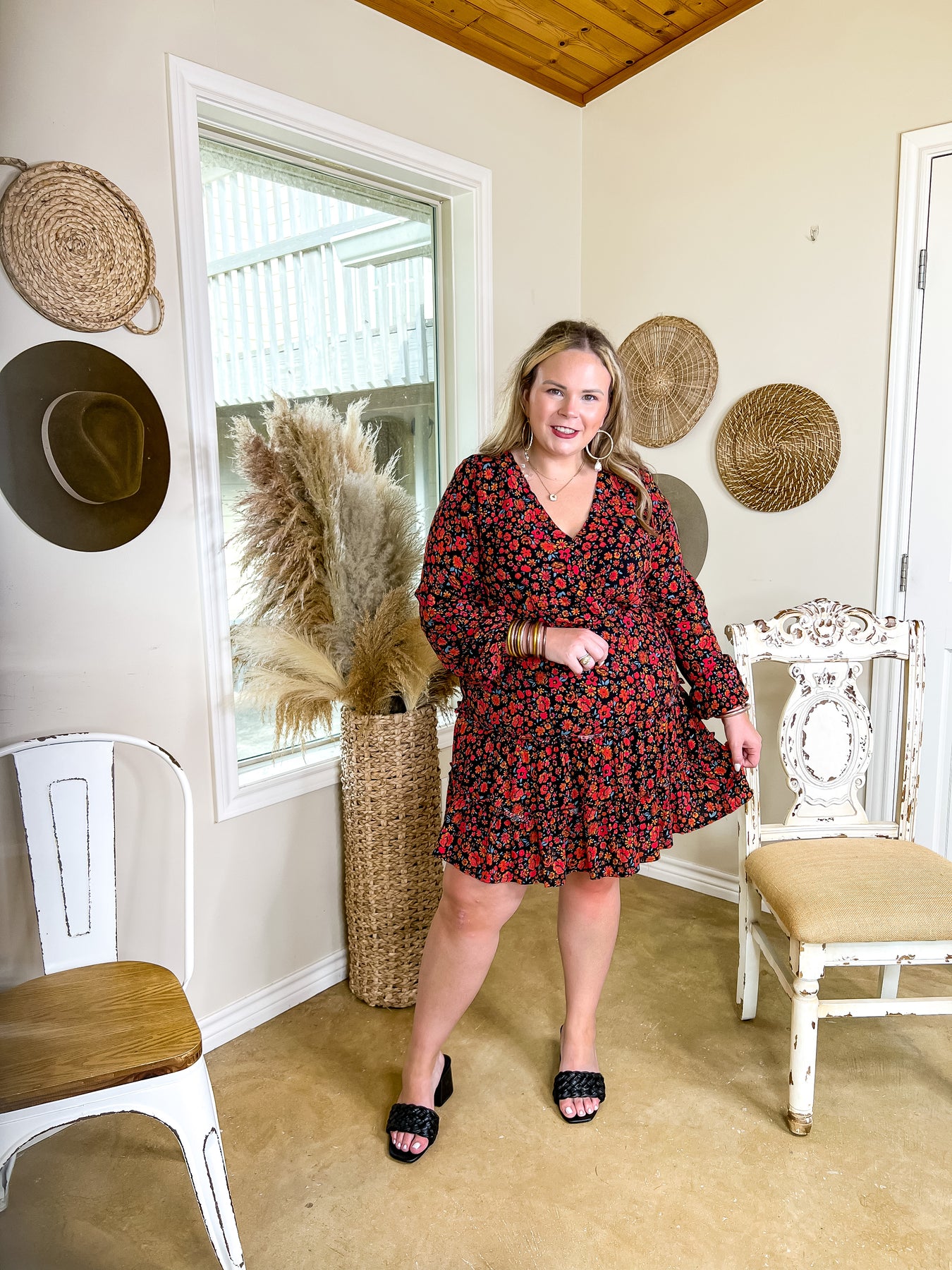 Chasing Love Floral Tiered Dress with Long Sleeves in Black