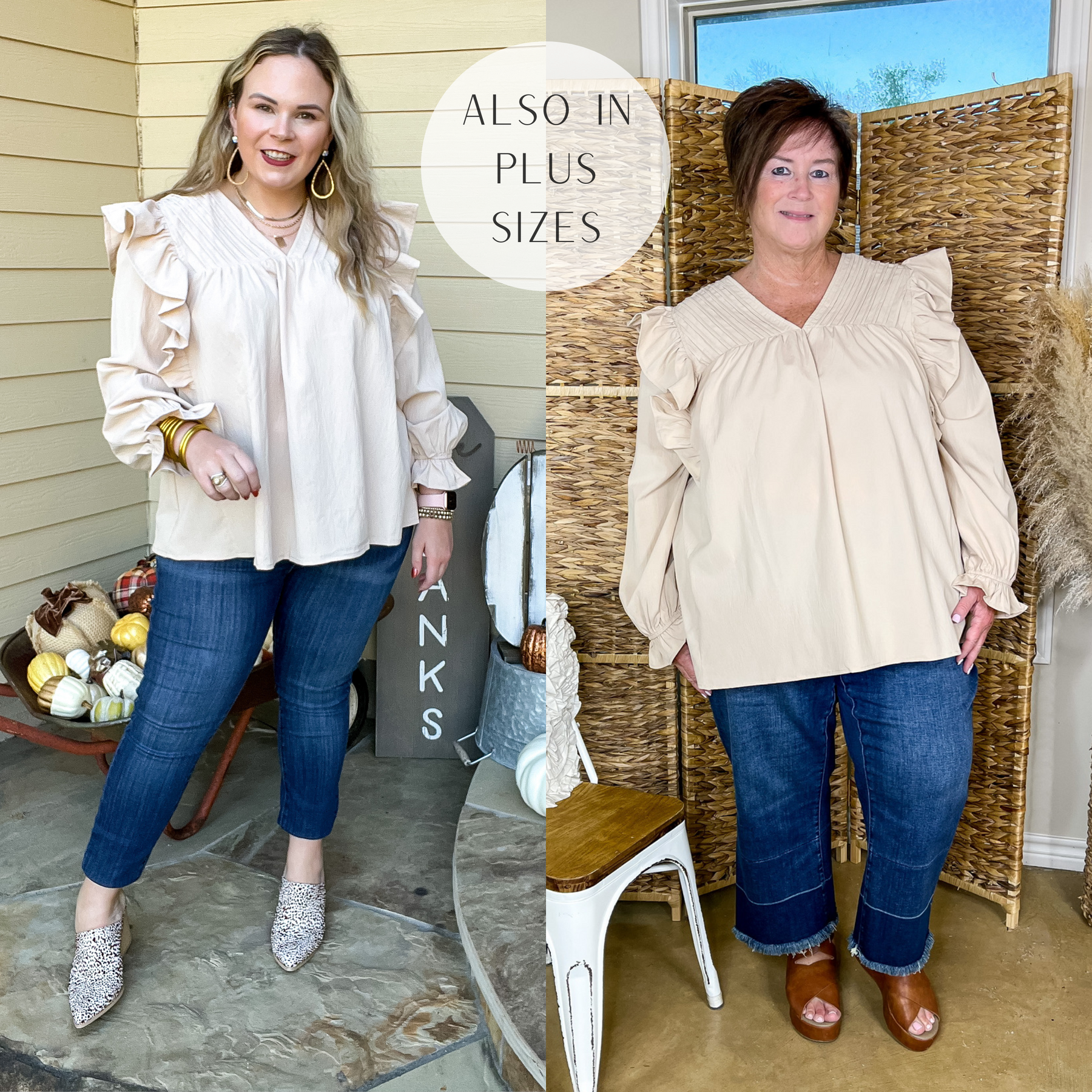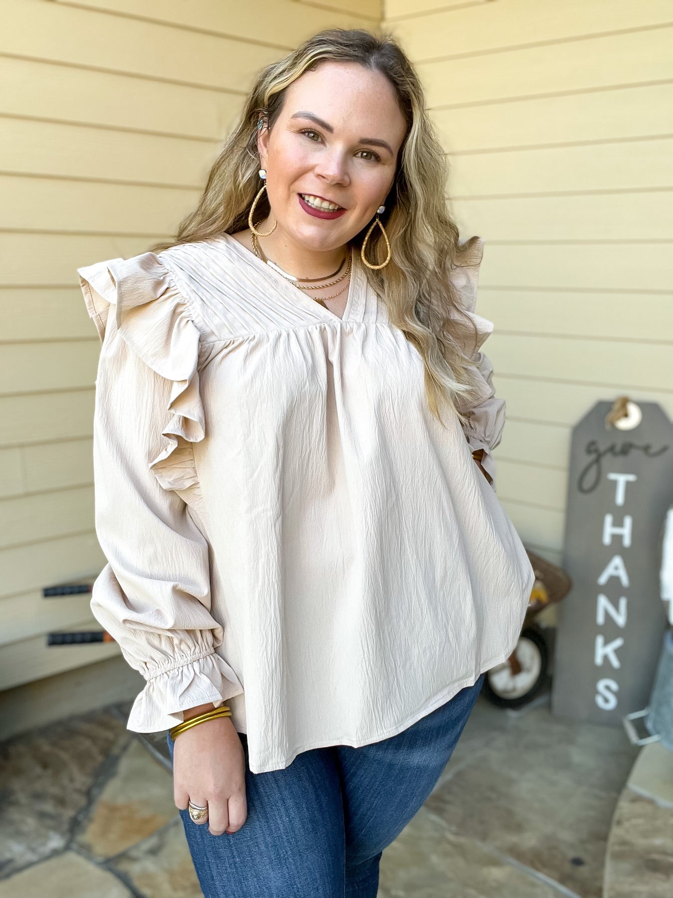 Last Chance Size Small | Coffee Perks Ruffle Detail Long Sleeve Top in Ivory