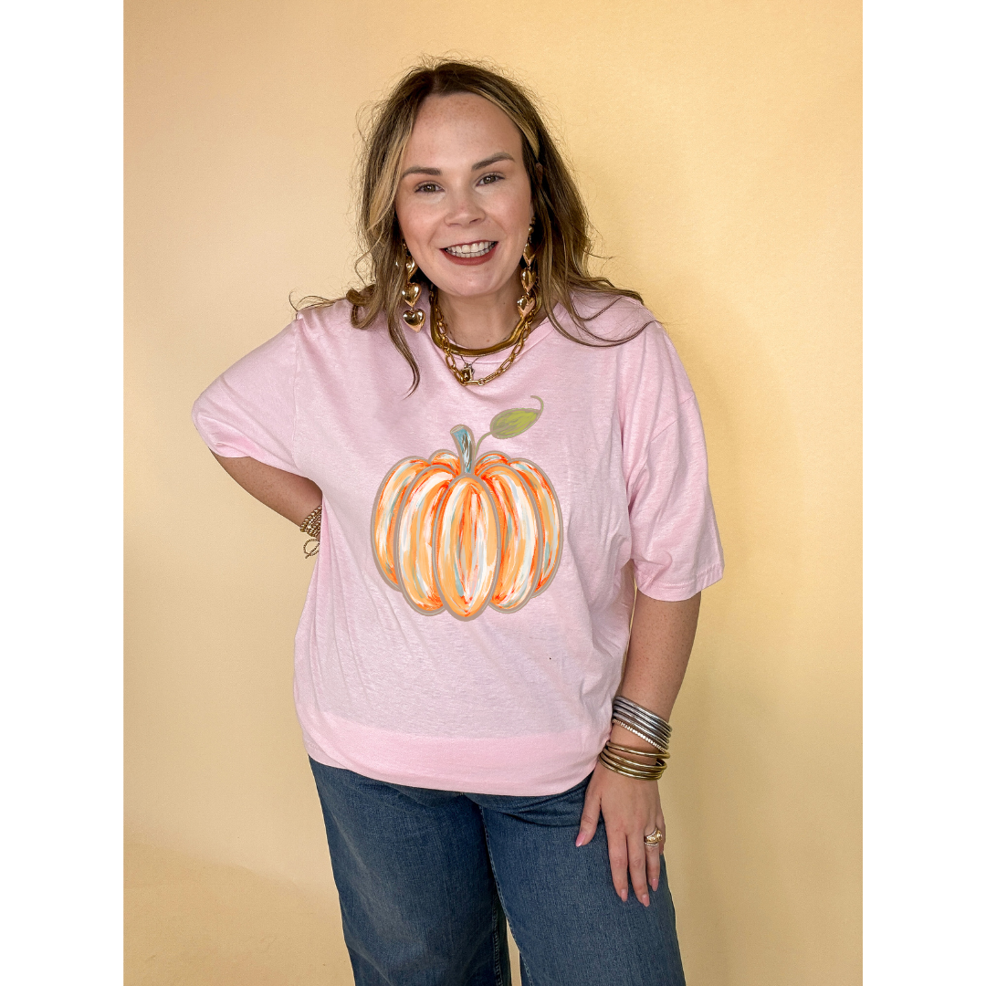 Elevate your fall wardrobe with our Watercolor Pumpkin Graphic Tee! This beautiful piece showcases a stunning watercolor pumpkin graphic and comes in multiple colors, including black, white, pink, and cream. It’s the perfect way to add a touch of autumn charm to any outfit. Don’t miss out on this must-have addition to your seasonal collection!