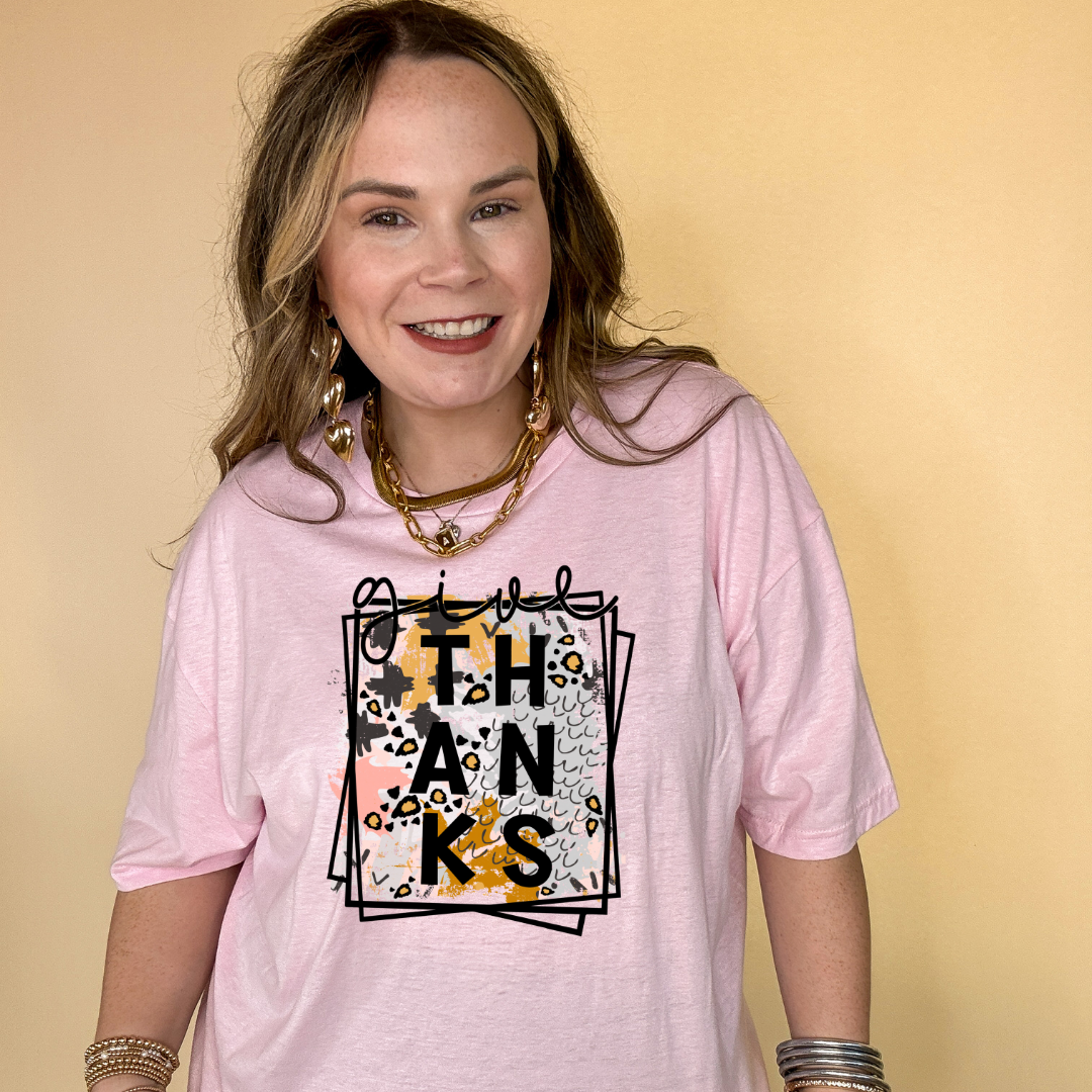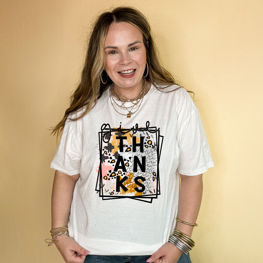 Elevate your wardrobe with our Give Thanks Abstract Animal Print Graphic Tee! Available in multiple color options, this unique tee boasts a bold abstract animal print graphic that will turn heads. Show off your sense of style and gratitude with this one of a kind piece.