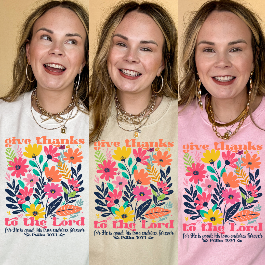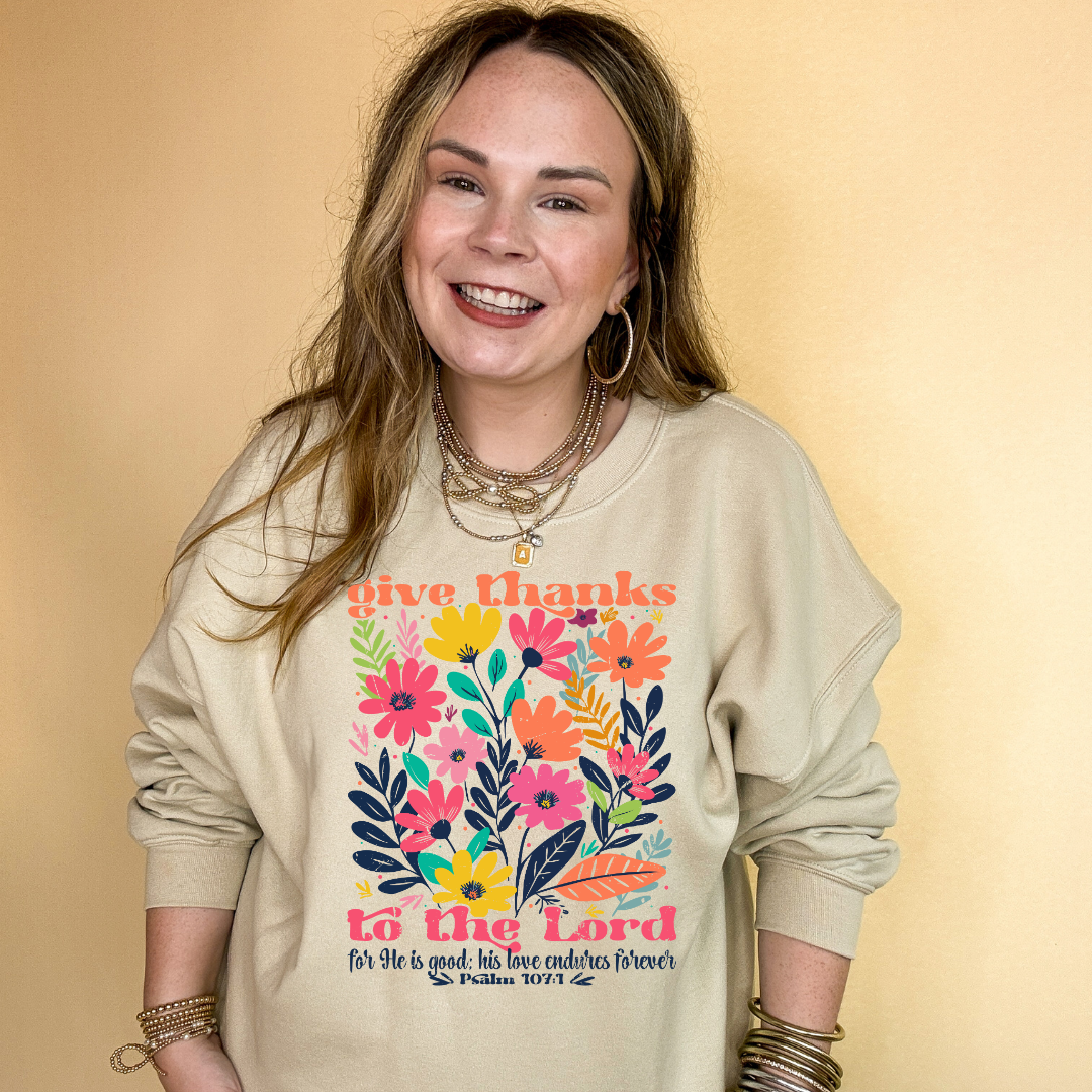 Online Exclusive | Psalm 107:1 Wildflower Wonder Graphic Sweatshirt in Multiple Color Options