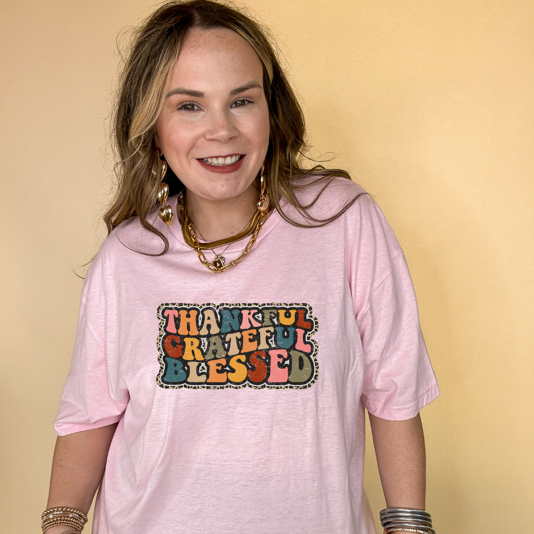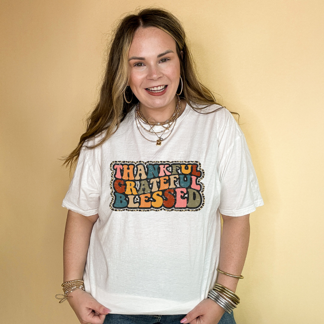 Online Exclusive | Thankful, Grateful, Blessed with Cheetah Print Outline Graphic Tee in Multiple Color Options