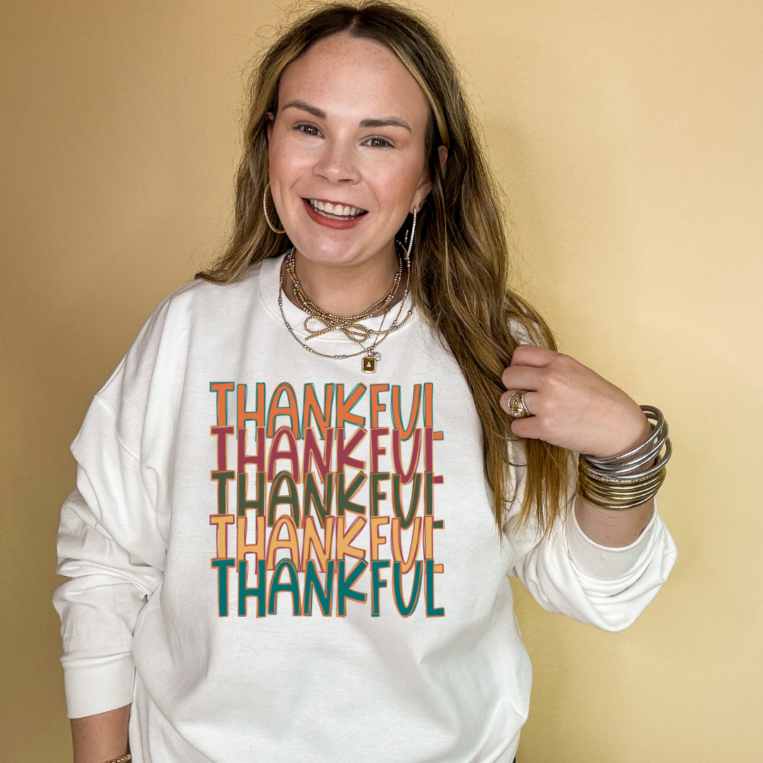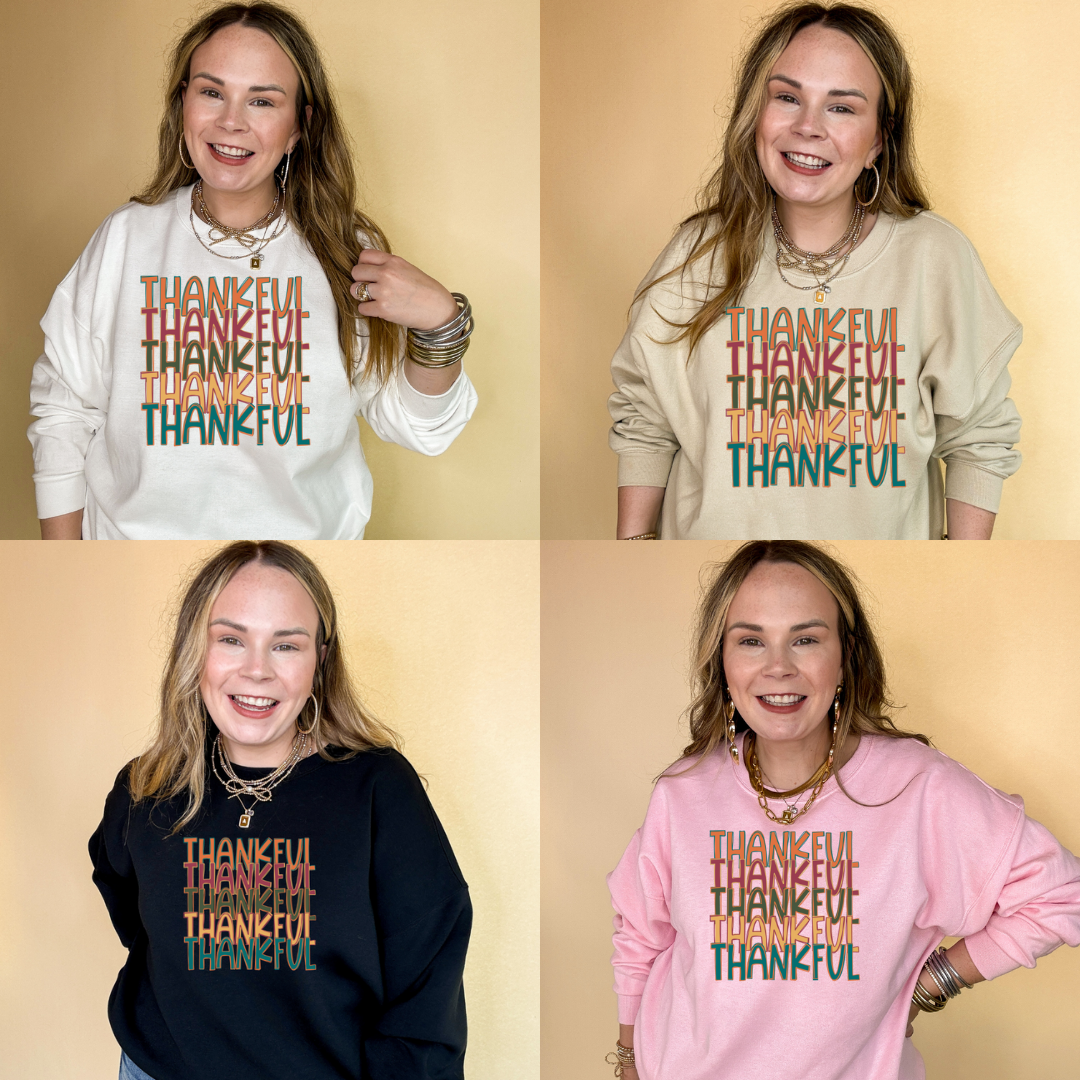 Online Exclusive | Thankful Thankful Thankful Graphic Sweatshirt in Multiple Color Options