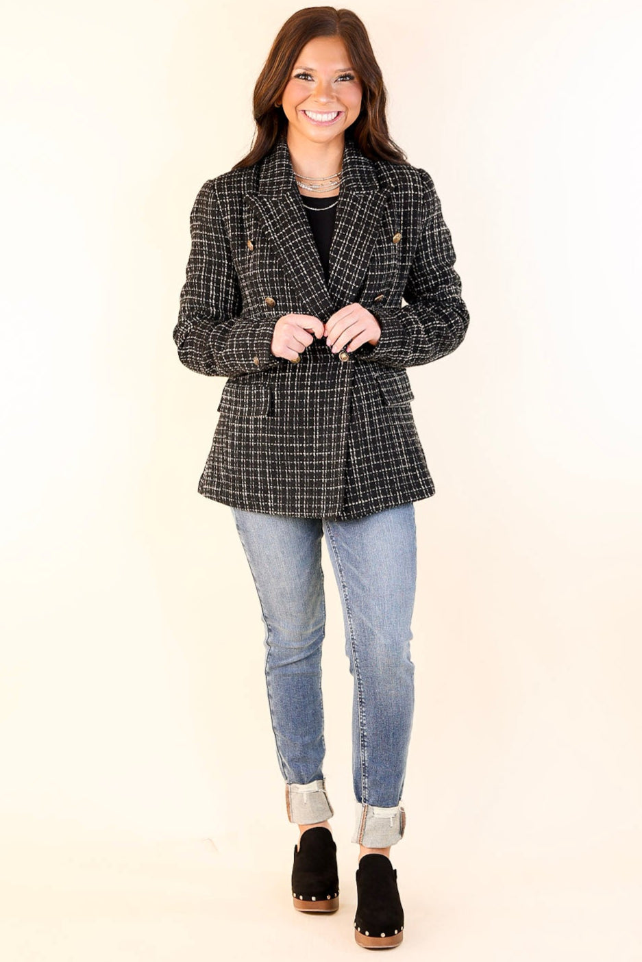 Timeless Tales Tweed Blazer with Bronze Buttons in Black