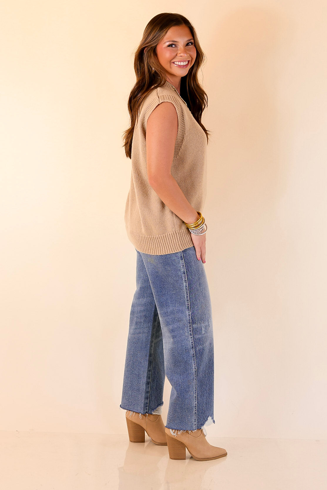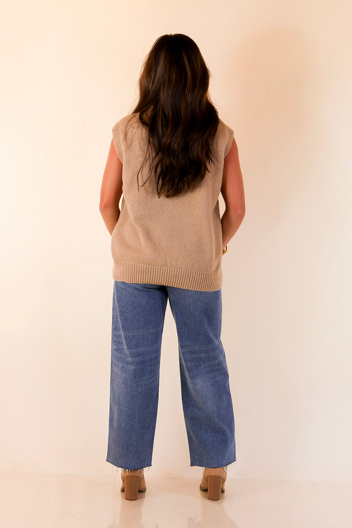 Vested Interest Knit V Neck Sweater Vest in Oatmeal Taupe