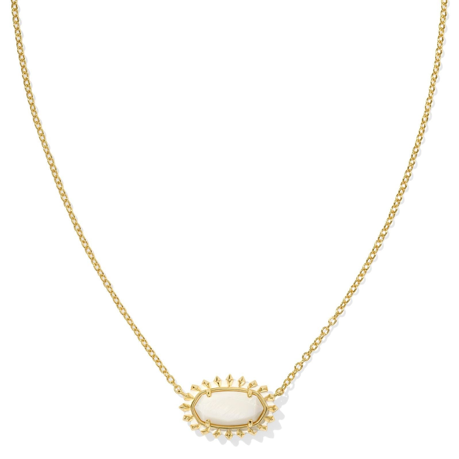 Kendra Scott | Elisa Gold Color Burst Frame Short Pendant Necklace in White Mother-of-Pearl