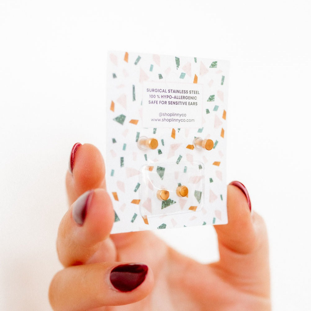 Introducing the Linny Co Eloise Heart Stud Earring, ideal for sensitive ears. These lightweight, micro-screwback stud earrings are made from 100% surgical-grade stainless steel, ensuring they are always copper and nickel-free. Featuring a gold heart with a CZ stone inlay, they combine style with durability. Crafted with premium materials, including a waterproof design, these micro-studs offer a secure fit for everyday wear. Perfect for both adults and kids, they are your go-to staple for any occasion.