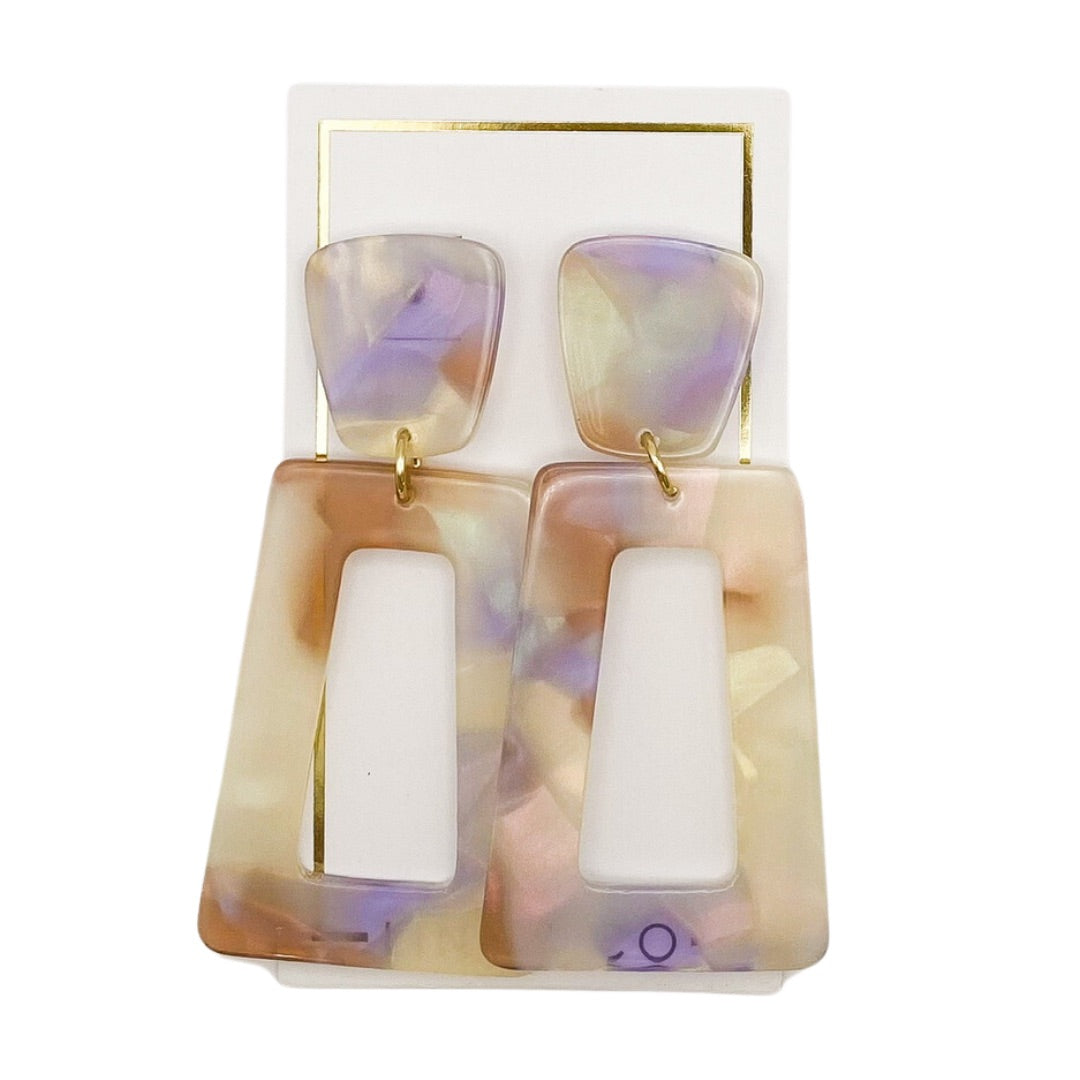 Introducing the Linny Co Kennedy Earrings, a statement piece that is a staple in the Linny Co collection. Crafted from 100% surgical-grade stainless steel and eco-friendly acetate, these earrings are light, durable, and safe for sensitive ears. Featuring a Lavender Honey design, a cream base with hues of light brown, purple, iridescence and a glossy finish, these earrings are always copper and nickel-free, making them the perfect blend of style and comfort.