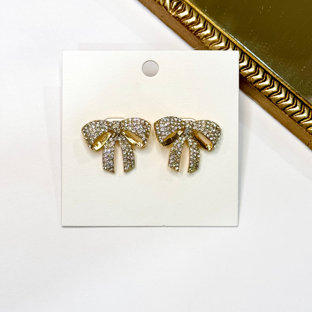 Twinkling Treasure Gold Tone Clear Rhinestone Bow Stud Earrings