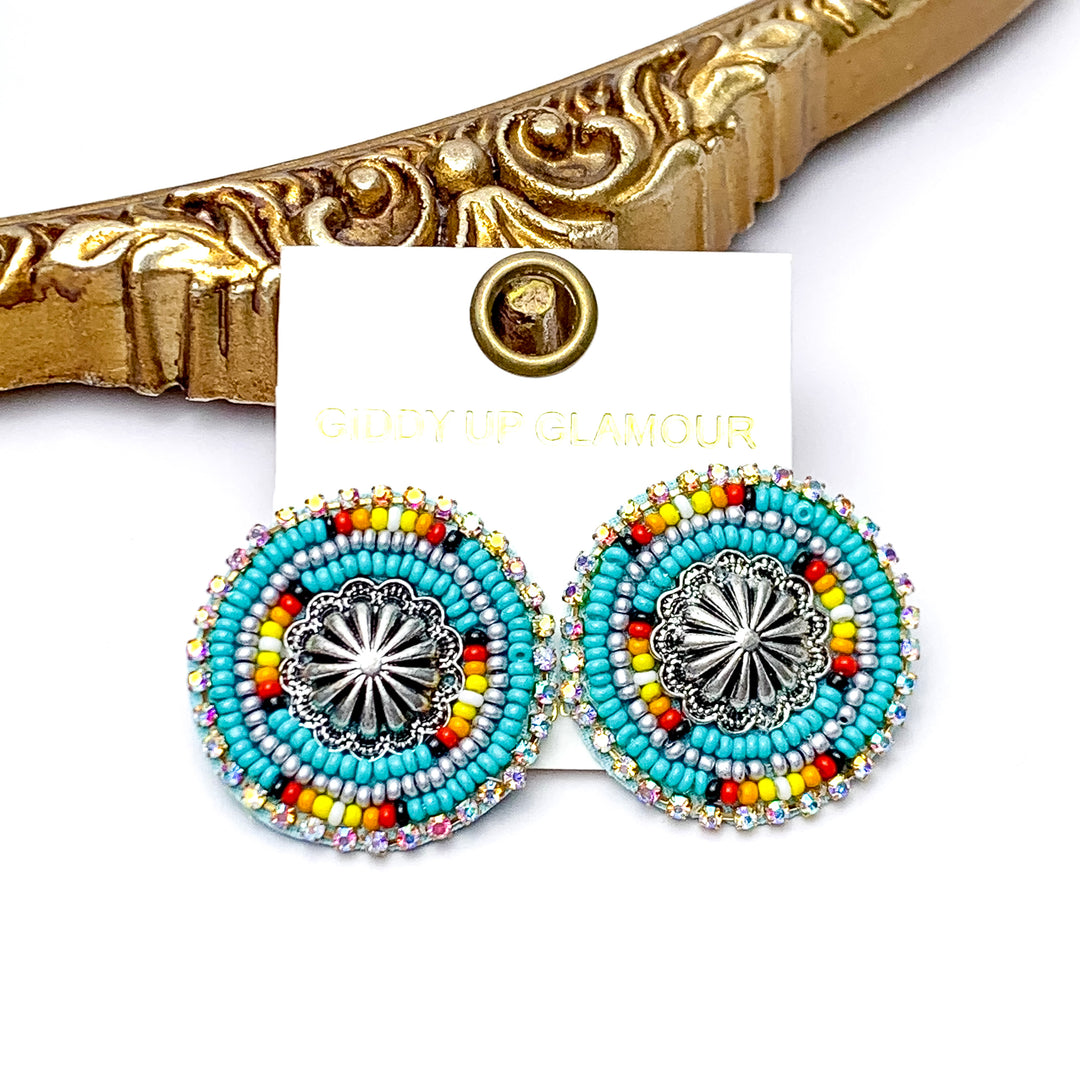 Frontier Flair Concho Seed Beaded Stud Earrings in Turquoise