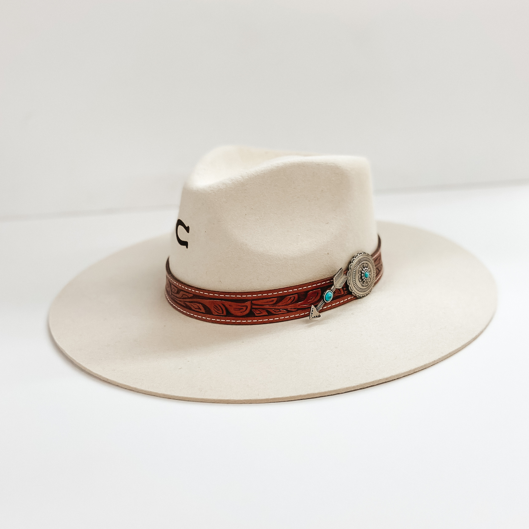 Charlie 1 Horse | White Sands Wool Felt Hat with Leather Tooled Band and Silver Concho in Ivory