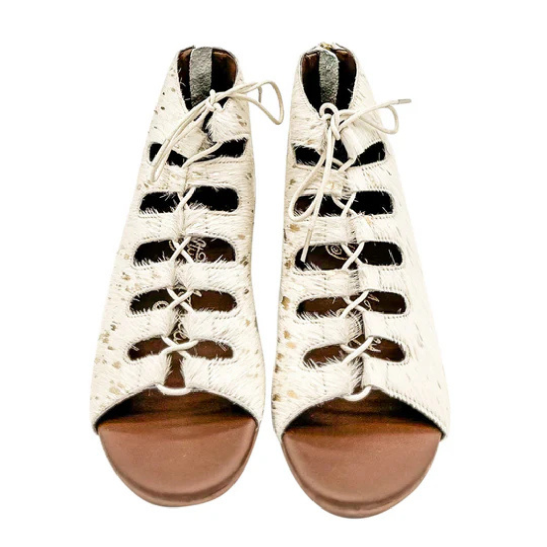 Elevate your style with our Nola Sandals - the perfect blend of gladiator and glam for any occasion! Made with genuine hide upper, these sandals feature a lace-up front and back zip for a secure fit. With a heel height of .5 inches, they add just the right amount of height. Be sure to size up if you're between sizes.
