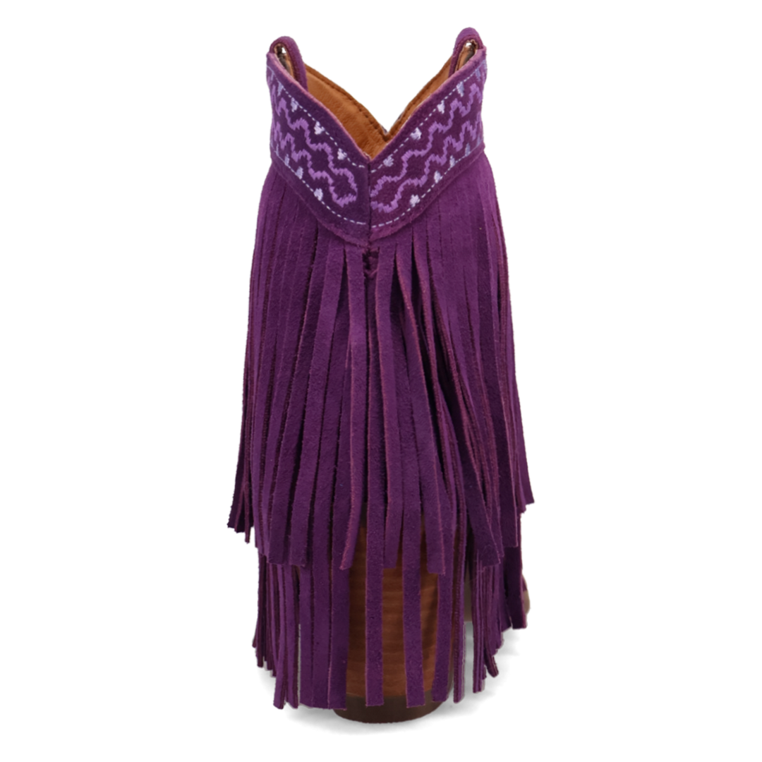 Be the talk of the town in these purple Dingo Tapadero booties! Our suede leather boots feature not one, but TWO layers of fringe, adding a touch of playful flair to any outfit. The intricate western-inspired embroidery wrapping around the ankle makes these booties perfect for any occasion. Preorder now before it's too late!