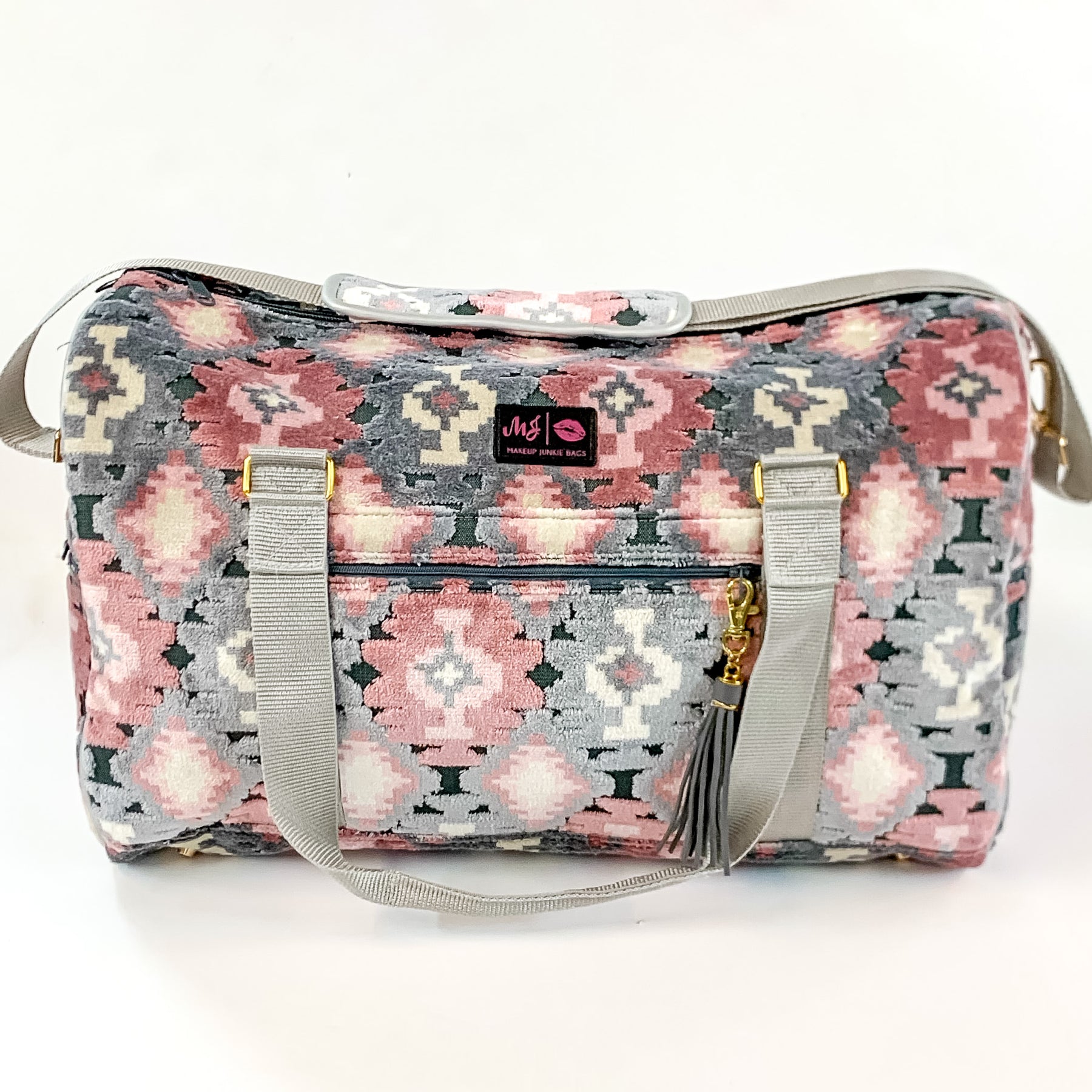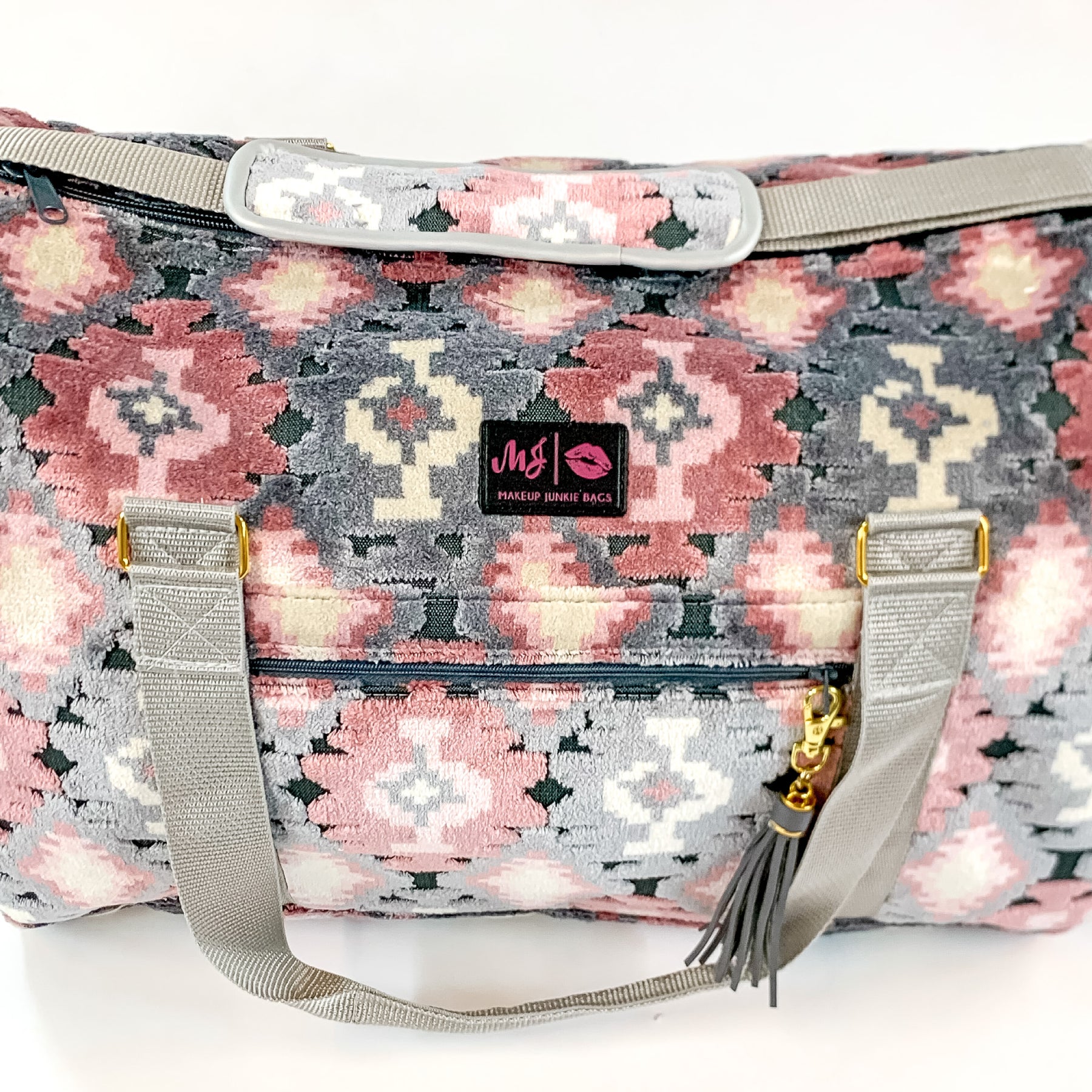 Makeup Junkie | Blush Aztec Duffel Bag in Blush Pink and Grey Mix