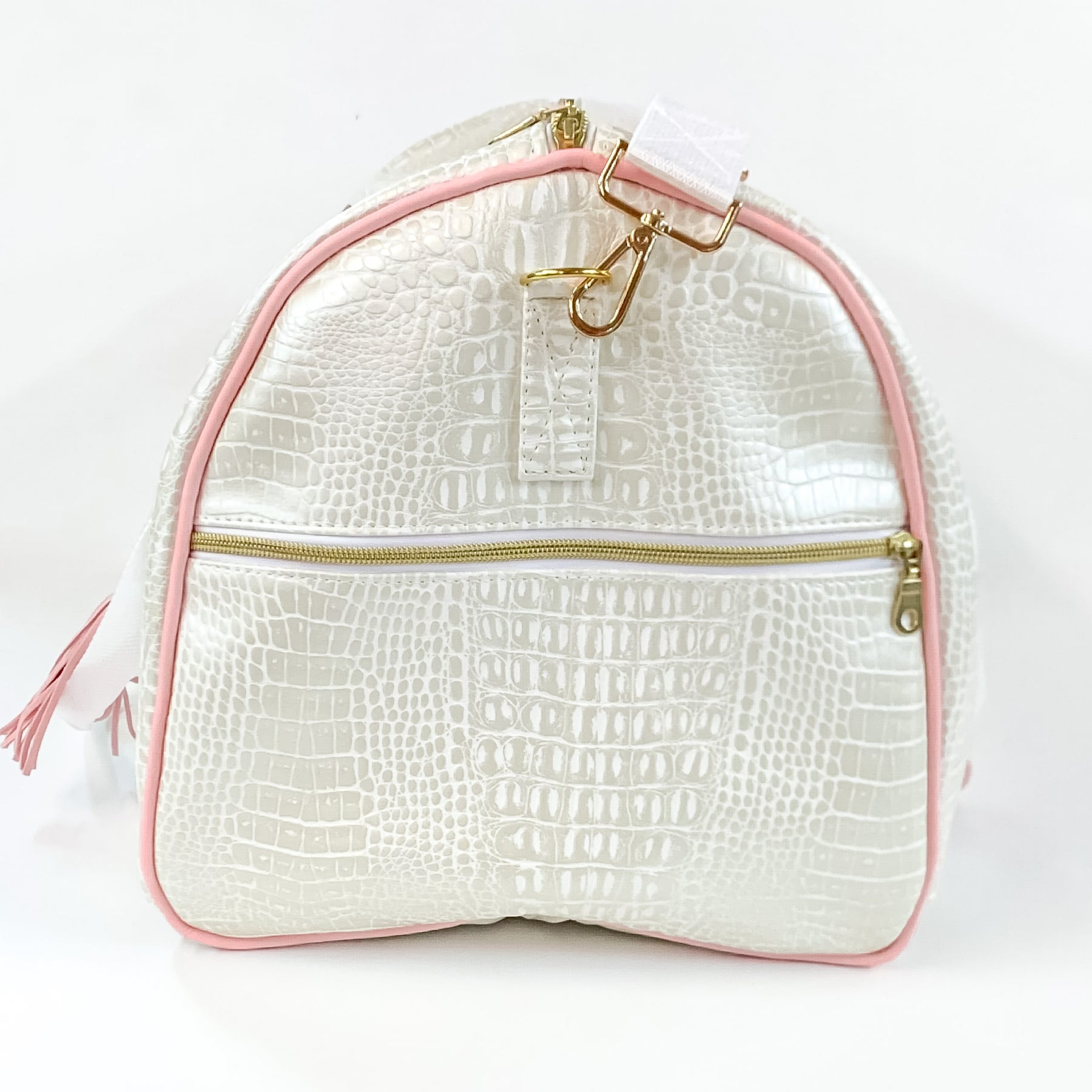 Makeup Junkie | Shade of Pearl Duffel Bag in Pearl White Croc Print