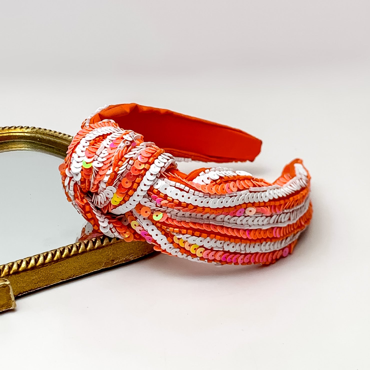 Striped Large Knot Headband in Orange and White
