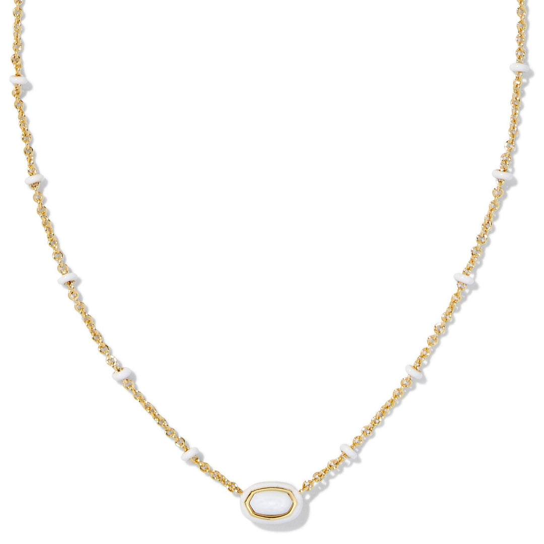 Kendra Scott | Mini Elisa Gold Enamel Frame Short Pendant Necklace in White Mother of Pearl